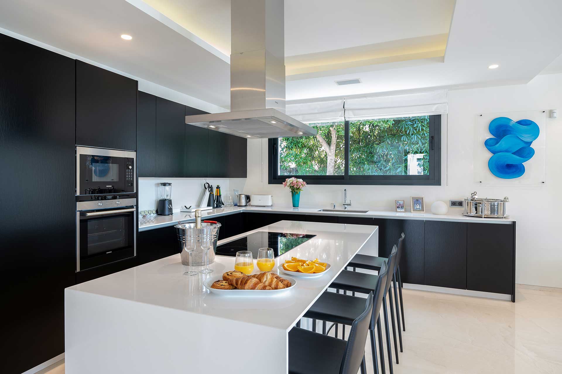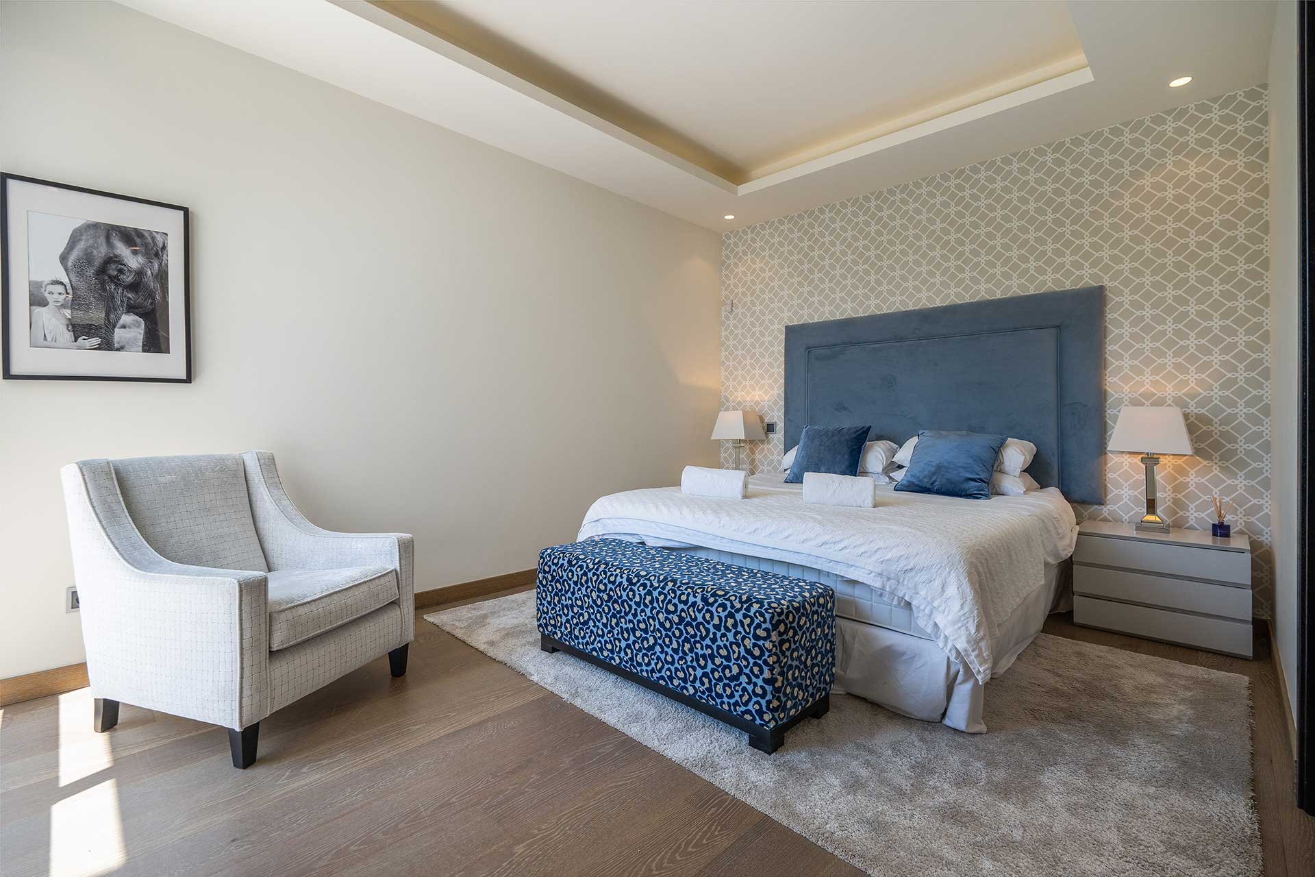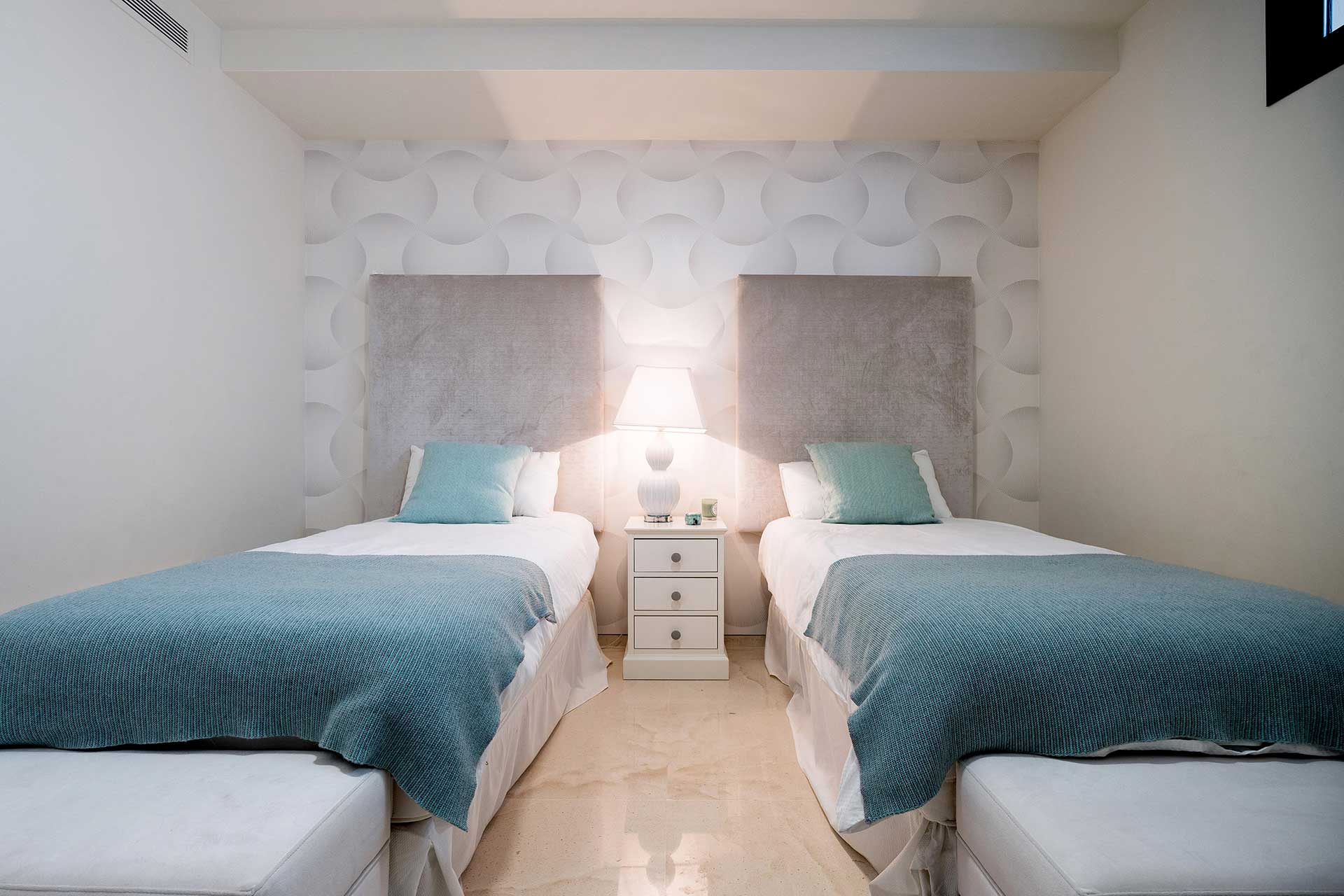 As you step into this opulent apartment, you are greeted by elegant interiors that blend contemporary sophistication with traditional Spanish charm. The expansive living areas are designed for relaxation, featuring plush furnishings and state-of-the-art entertainment systems. The modern kitchen is a culinary enthusiast’s dream, equipped with high-end appliances and ample space for preparing gourmet meals. Each of the six bedrooms offers a serene retreat, with luxurious bedding and en-suite bathrooms. The versatility of the sleeping arrangements allows for single beds to be pushed together to form a king, accommodating guests’ preferences.