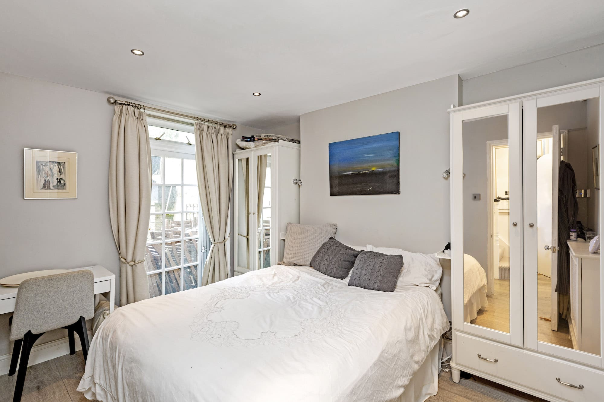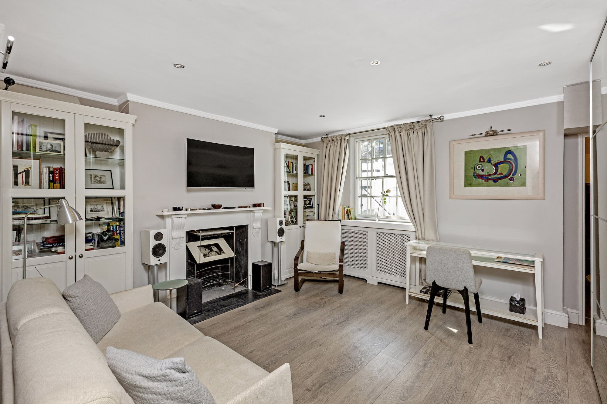 While this flat does not feature a traditional garden, it offers a charming balconette where you can unwind with a morning tea or an evening gin and tonic. Situated within a period building, the architecture reflects the historic elegance of South Kensington. The surrounding streets are lined with cafes, boutiques, and cultural landmarks, offering a quintessential London experience just steps from your door.