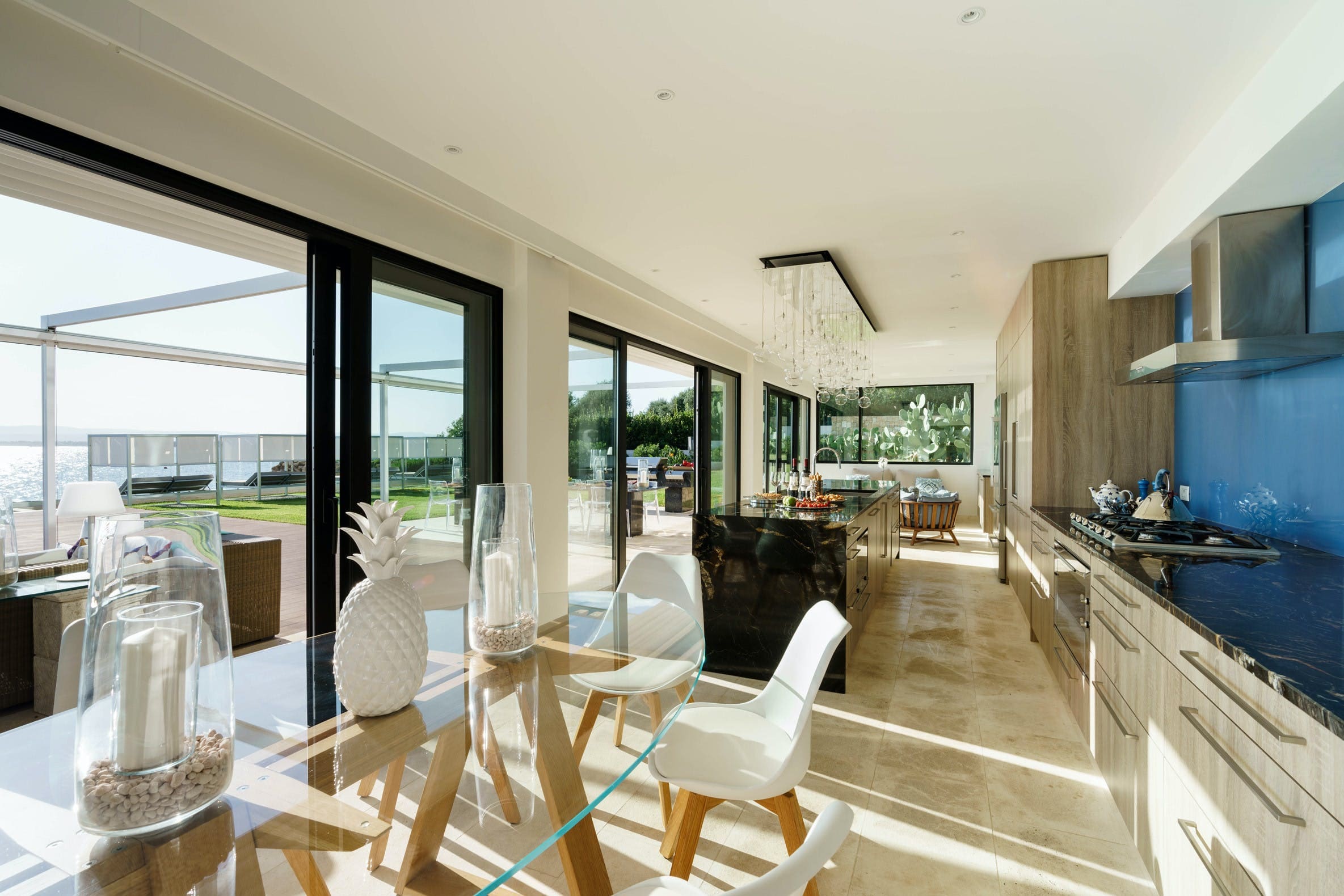 Step inside and be greeted by a harmonious blend of contemporary design and classic Italian elegance. The spacious living areas are bathed in natural light, thanks to floor-to-ceiling windows that frame captivating views of the azure sea. The modern kitchen is well-equipped for culinary adventures, while each of the four bedrooms offers a serene retreat, complete with en-suite bathrooms to ensure privacy and comfort for every guest.