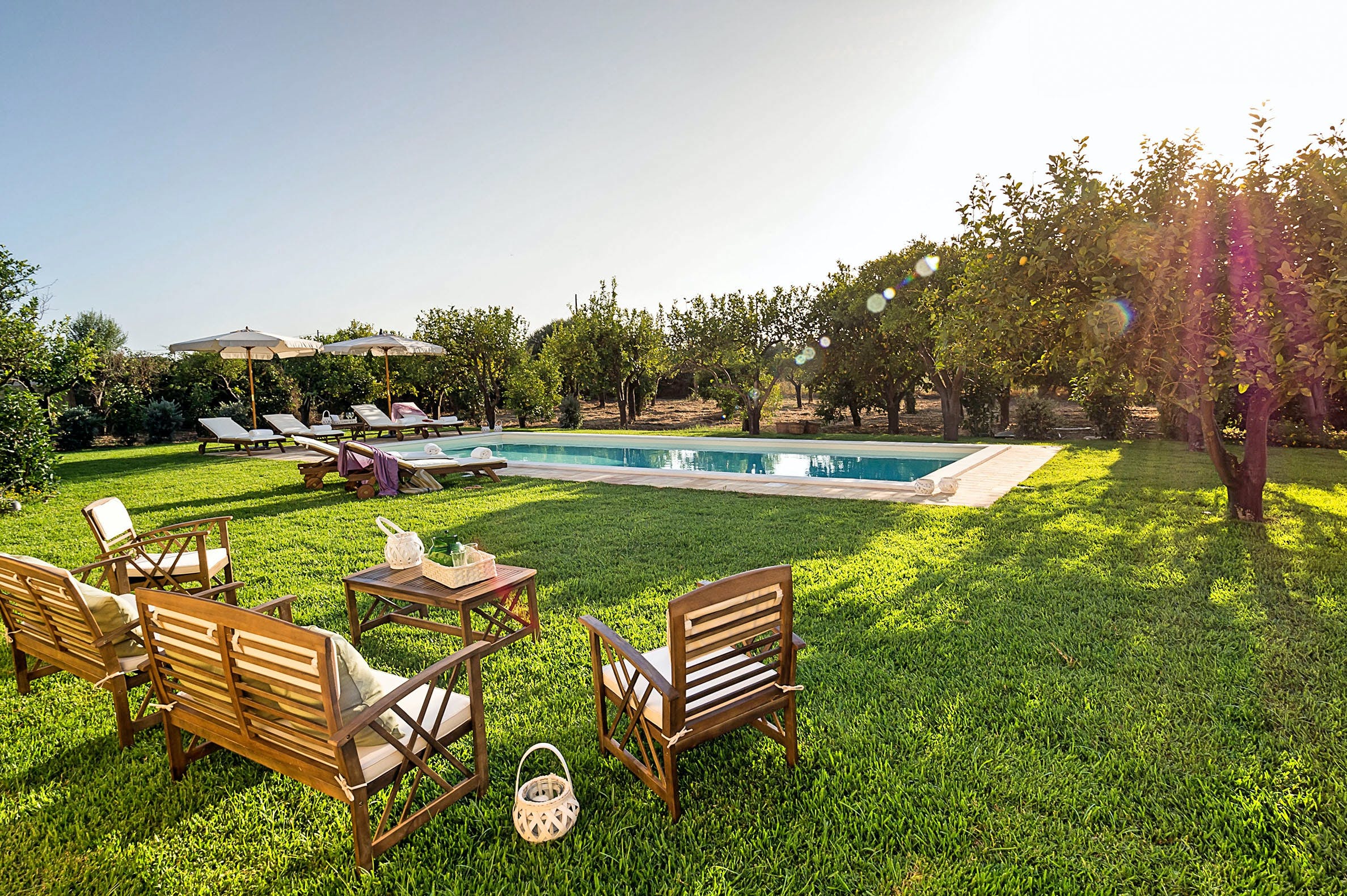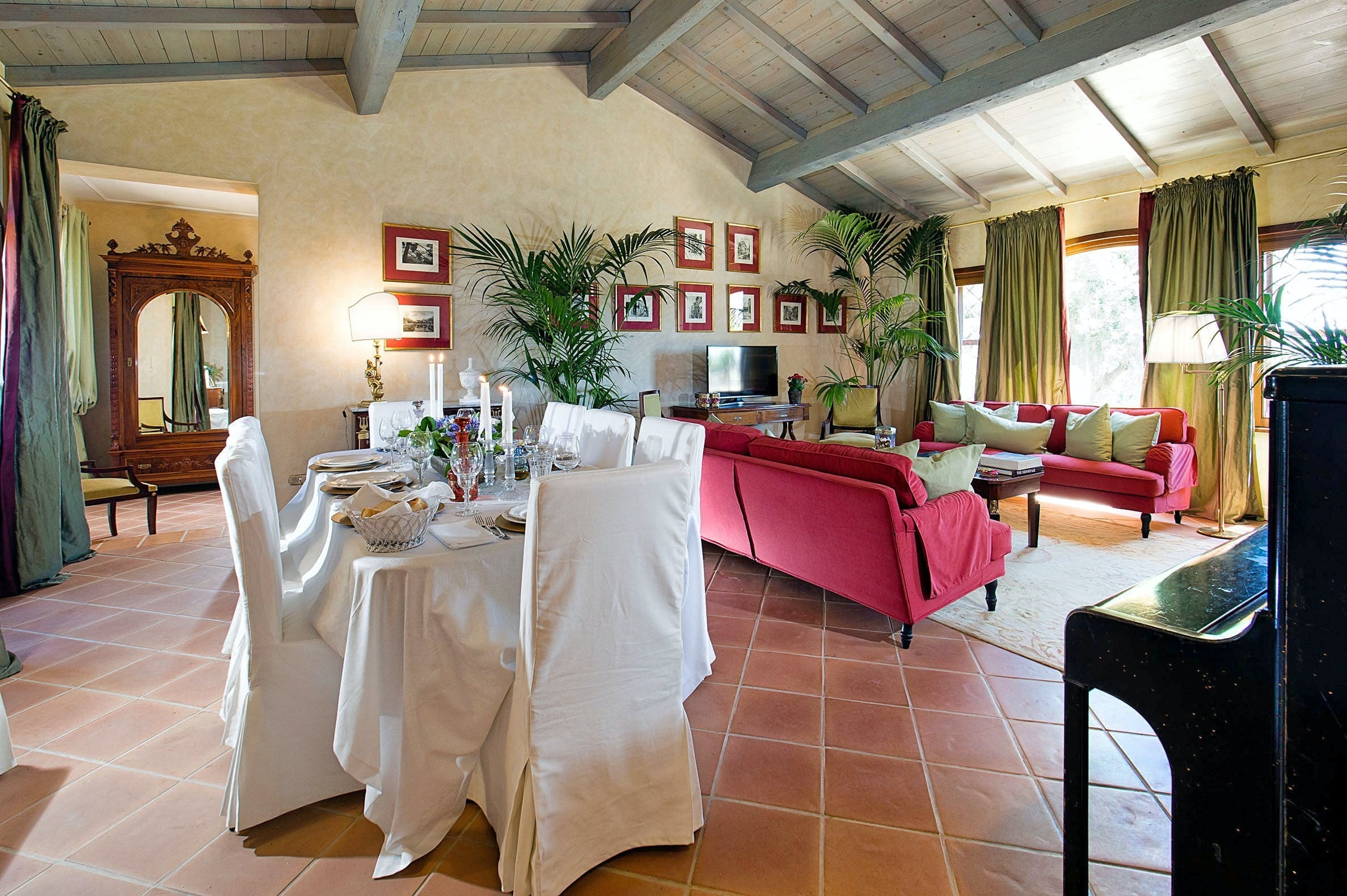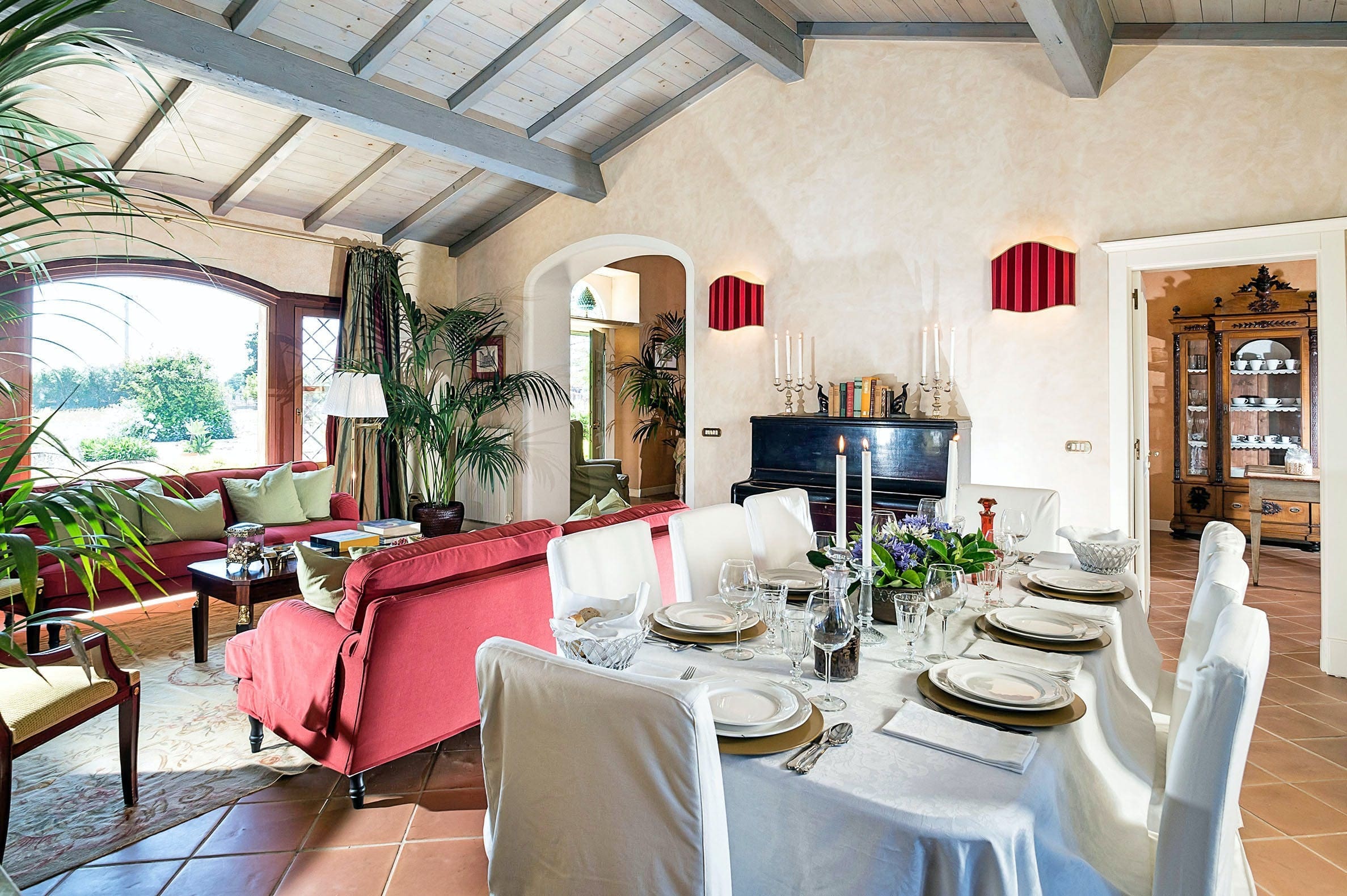 Palazzo Zagara can accommodate up to eight guests, featuring five bedrooms and three bathrooms. Parking is available on the premises for those hiring a car. The swimming pool is seasonal, open from March to November. For more options, browse our luxury villa rentals in Italy.