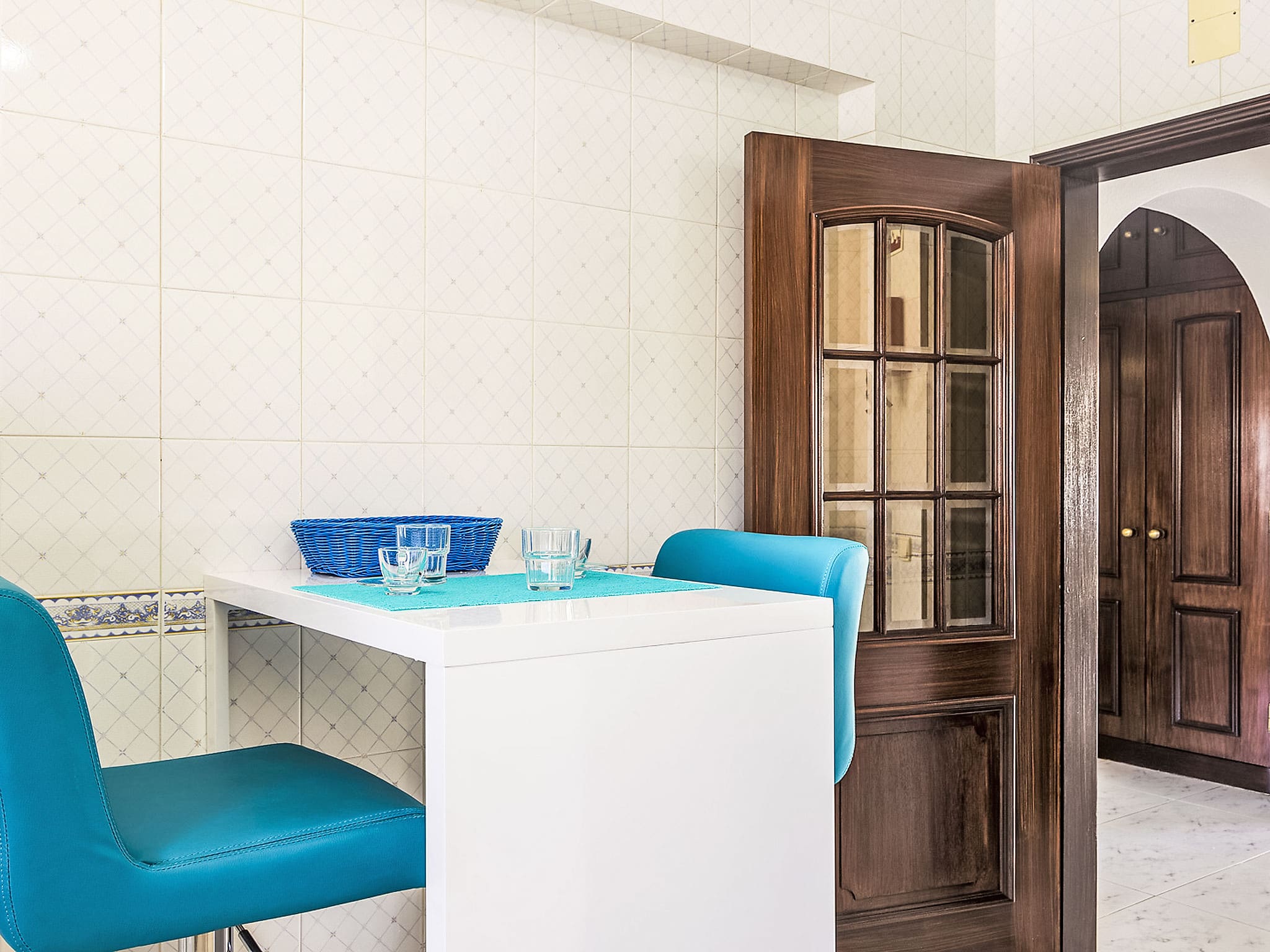 Spanning 198 square metres across two thoughtfully designed levels, this contemporary villa underwent a comprehensive renovation in 2016, resulting in bright, modern interiors that maximise both comfort and style. The ground floor features an open-plan living and dining area with comfortable seating including a sofa bed, complemented by air conditioning and a flat-screen television with international channels. The fully equipped kitchen includes modern appliances such as a dishwasher, microwave, ceramic hob, and electric coffee machine, perfect for preparing meals during your stay.