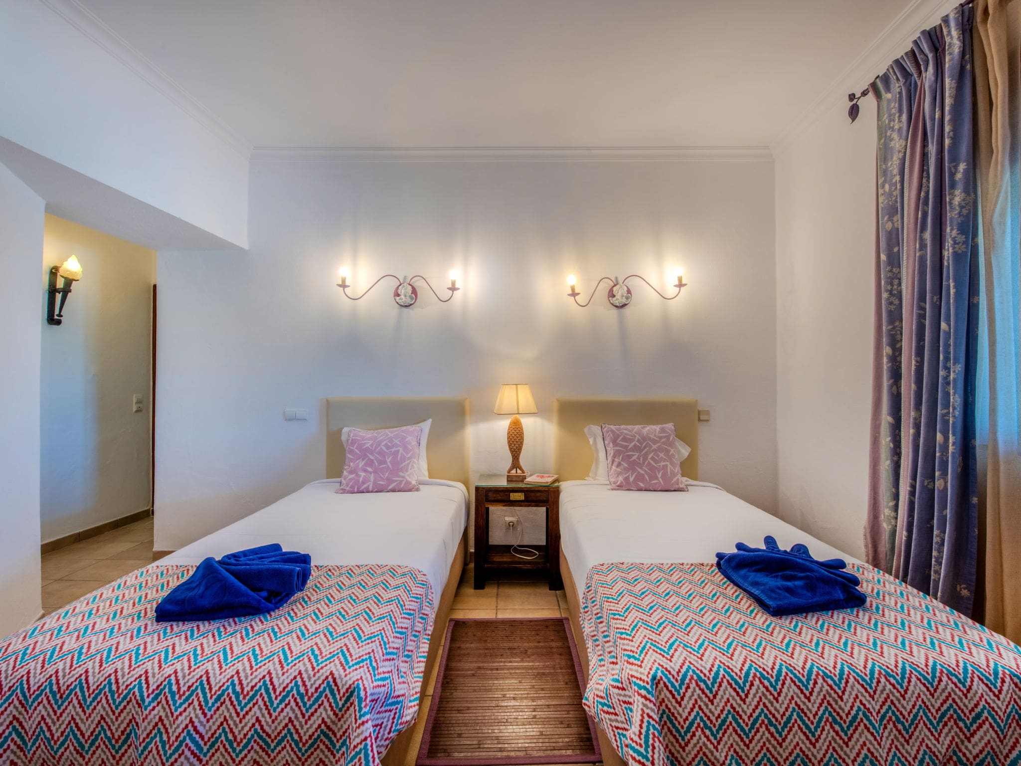 This spacious 337-square-metre villa welcomes guests into bright, airy living spaces designed with both relaxation and entertainment in mind. The open-plan living area features cable television and air conditioning, flowing seamlessly onto the terrace and pool area through large glass doors that frame the spectacular sea views. Three comfortable bedrooms each accommodate two guests in twin beds, all equipped with individual climate control for year-round comfort. The fully equipped kitchen includes modern appliances from dishwasher and microwave to electric coffee machine, making self-catering a pleasure rather than a chore. Two well-appointed bathrooms with efficient fixtures serve the accommodation, while thoughtful extras like WiFi throughout, washing machine, and iron ensure a comfortable stay.