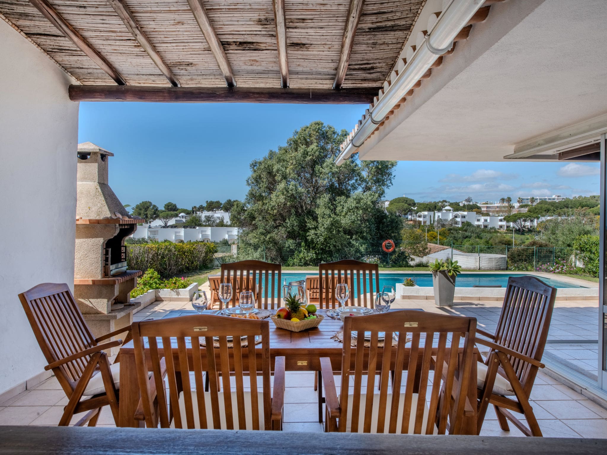 Designed with families in mind, the villa provides practical amenities including baby cots suitable for children up to two years old and a high chair for meal times. The single-level layout ensures easy navigation for all ages, while the private pool area allows parents to relax while children play safely. The residential location offers peace and quiet away from tourist crowds, yet maintains convenient access to family attractions, restaurants, and essential services. With space for six guests across three bedrooms, the property suits multi-generational families or groups of friends seeking a sophisticated base for their Algarve adventure.