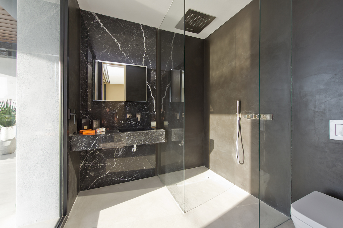 On the upper floors you shall discover that this home is completed by three suites featuring stylish and sleek black marble bathrooms, super king or king sized beds, rainfall showers and terraces. The remaining bedroom has an equally majestic bathroom and can be found neighbouring the garden. All bedrooms also have terrace access and offer stunning views across the bay. on site chef and housekeeper can be offered as a bolt on to booking this property. The interior is designed with a mix of eclectic brands including Casa Desus , talenti , Tom Dixon and Soho House interiors. The property sleeps 11 person in total with four bedrooms in the main house sleeping eight and a separate apartment sleeping three.