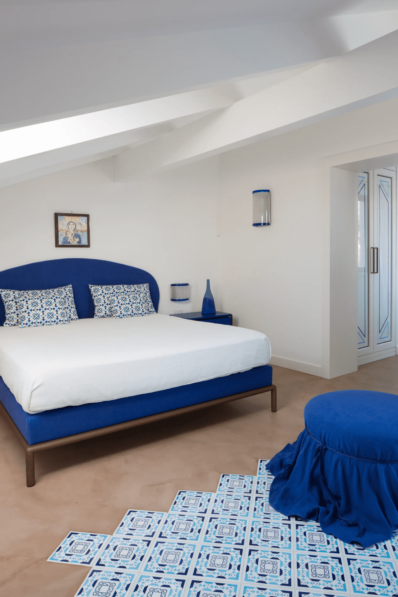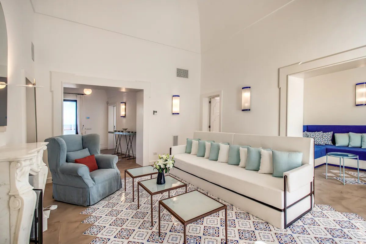 The villa’s outdoor spaces are nothing short of spectacular. The infinity pool offers panoramic views of the Amalfi Coast, where azure waters meet the sky. Multiple terraces provide idyllic settings for alfresco dining or simply lounging under the Italian sun. The villa is nestled on a hillside, offering commanding views and a tranquil atmosphere just steps away from the vibrant town below.