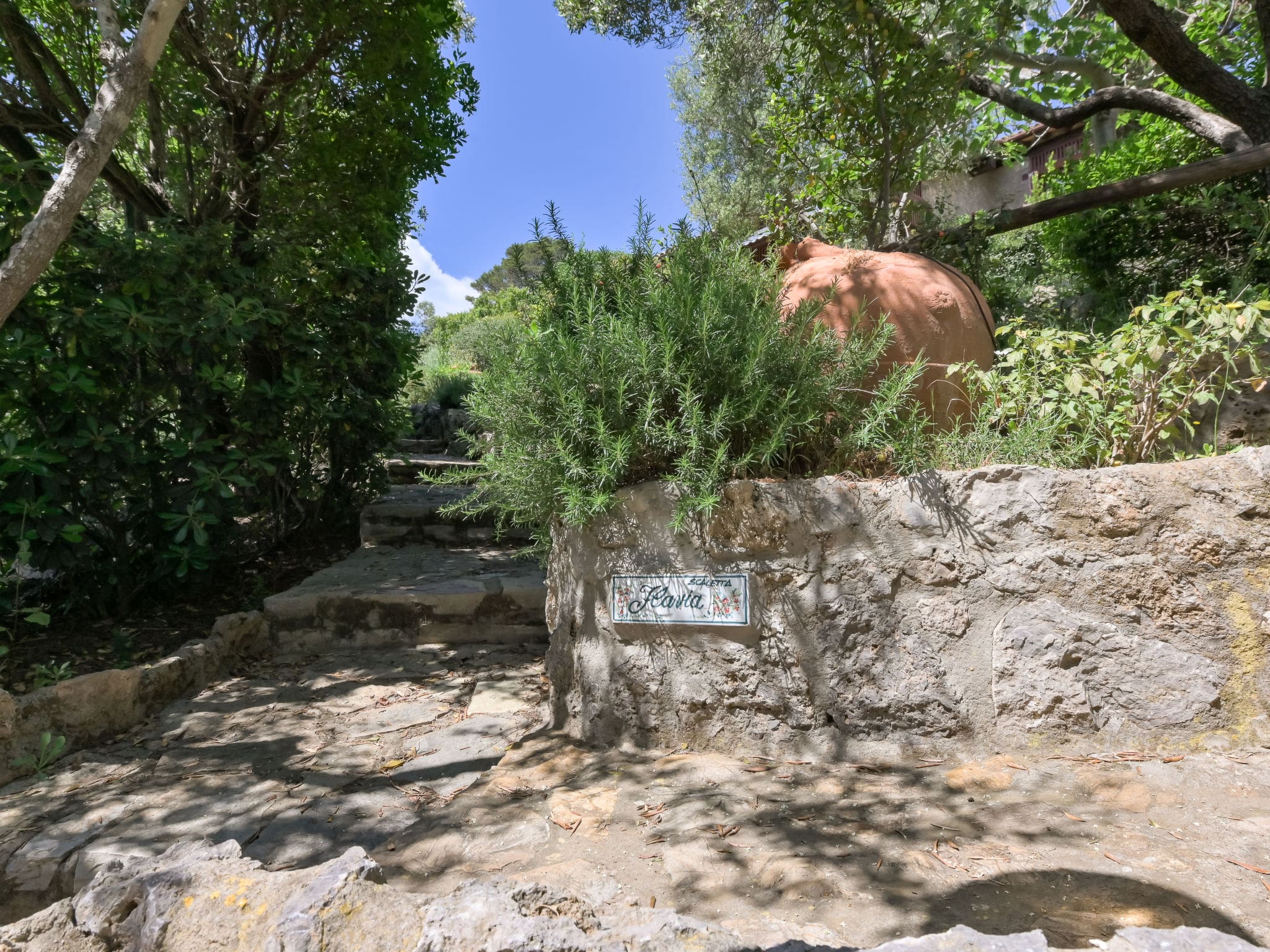 The villa’s outdoor spaces truly shine, with multiple terraces and a beautifully terraced, fenced garden that provides both privacy and stunning sea views. The large terrace, partially covered for shade, becomes the heart of outdoor living with comfortable furniture and a barbecue for alfresco dining. From this elevated position, guests enjoy marvelous panoramic views across the Mediterranean, creating the perfect backdrop for morning coffee or sunset aperitifs. The fenced garden ensures security for families with children or pets, while the stepped approach adds to the property’s sense of privacy and elevation.