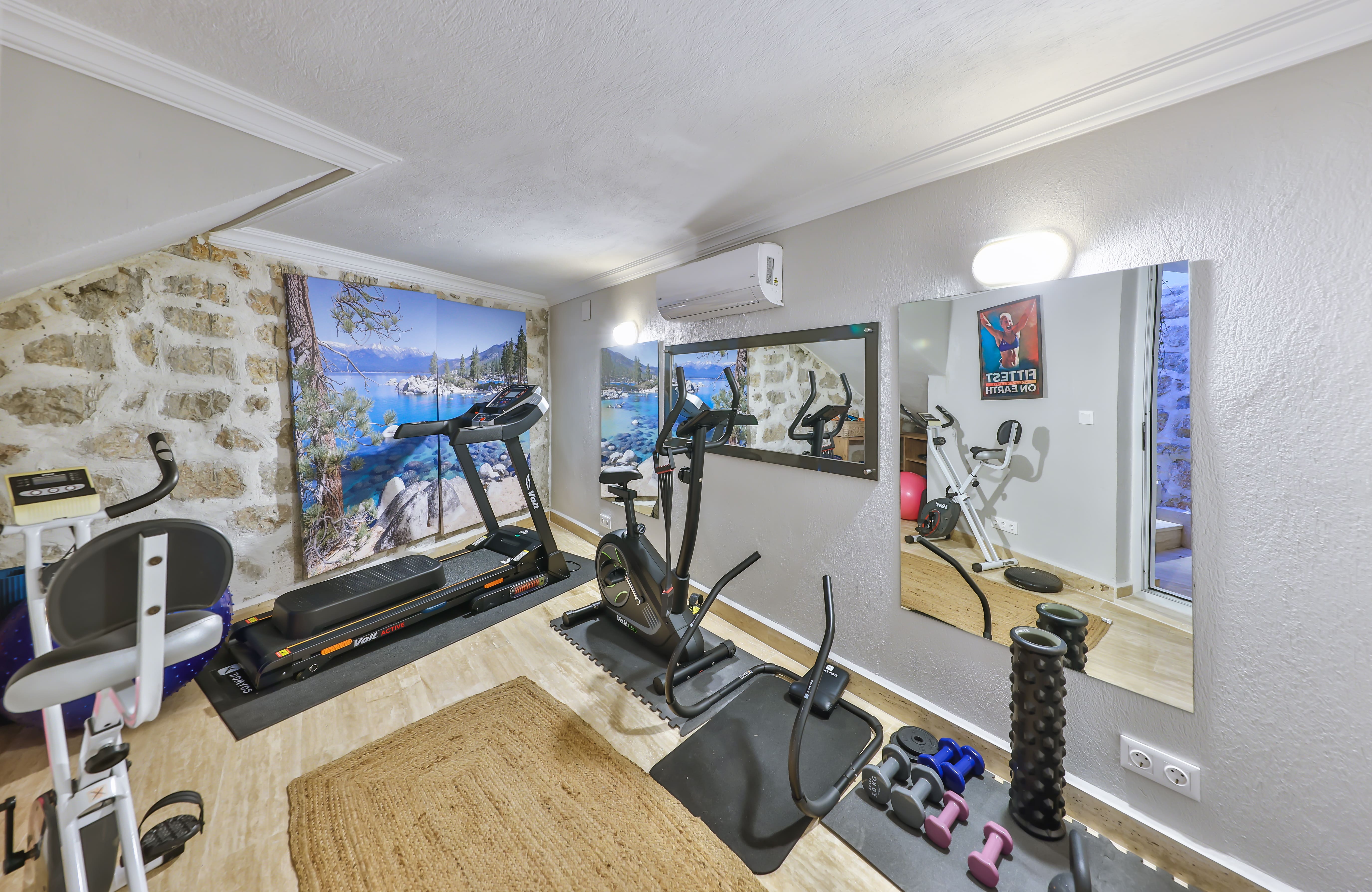 Step inside and be greeted by expansive living spaces adorned with elegant furnishings and modern decor. The villa features five beautifully appointed bedrooms, each with en-suite bathrooms, ensuring ample privacy and comfort for up to ten guests. The state-of-the-art kitchen is equipped with top-of-the-line appliances, perfect for preparing gourmet meals. For fitness enthusiasts, a well-equipped gym awaits, featuring an exercise bike, treadmill, elliptical, weights, and yoga equipment.