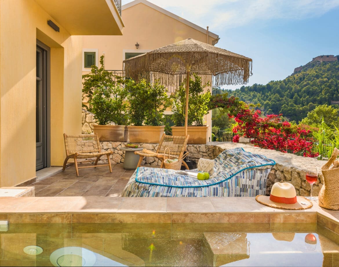 Villa Maggio, nestled in the heart of Assos, Kefalonia, is the ultimate haven for couples in search of a tranquil and luxurious escape to explore the enchanting wonders of this beautiful Greek island. This divine villa provides the perfect fusion of contemporary comfort, serene natural beauty and awe-inspiring vistas of the sea. Set in the picturesque village of Assos, characterised by its charming pastel-hued houses, quaint eateries and serene beaches, this villa offers an oasis of seclusion while granting easy access to the region’s captivating allure. With the beach just a hundred meters away and a leisurely three-minute stroll to the village centre, Villa Maggio ensures convenience and intimacy.