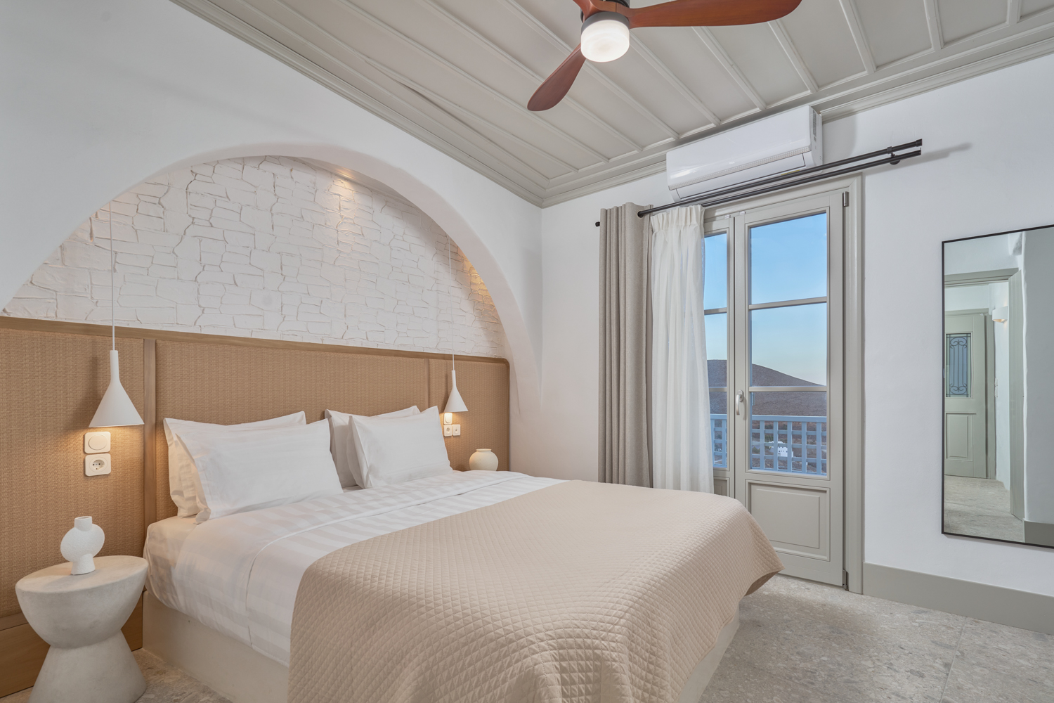 Gideon Suite brings guests seamlessly into the heart of Greek island life. This villa, with its seamless blend of comfort, aesthetics, and functionality, is a testament to the island’s beautiful minimalist charm, ensuring your stay is a harmonious symphony of relaxation and adventure.
