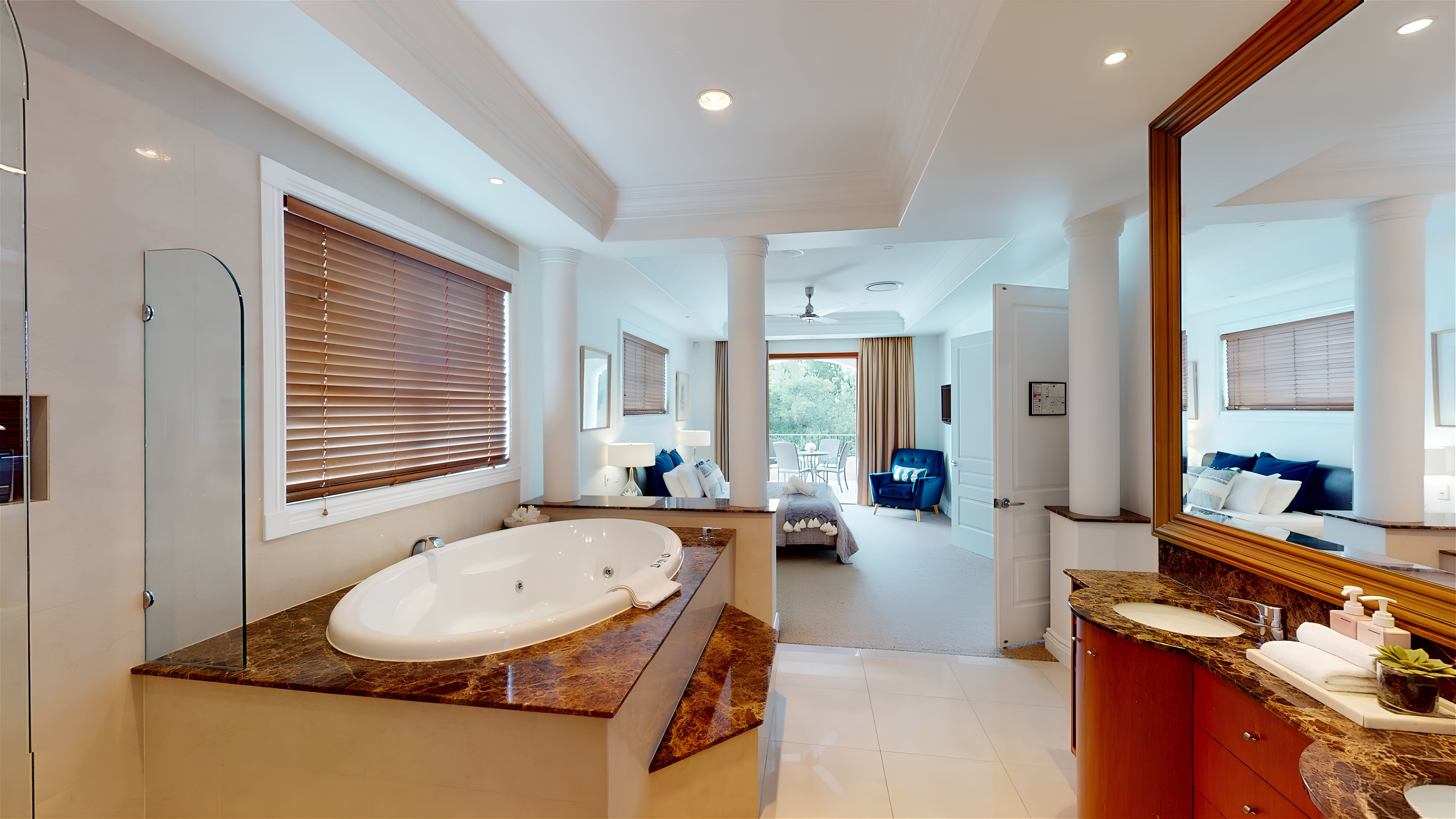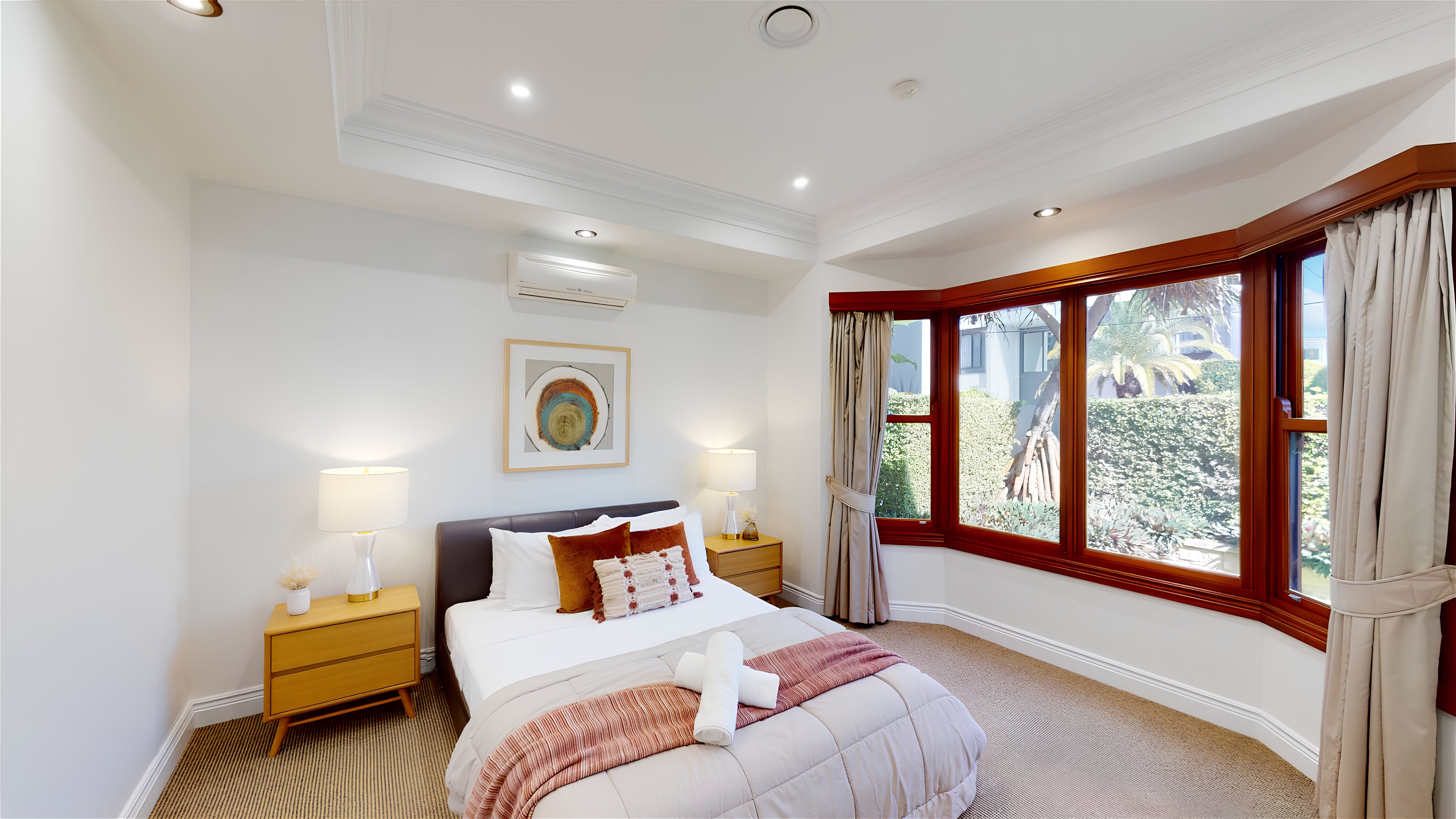 Step into a world of elegance and comfort inside this Queensland villa. The interior boasts a sophisticated design with spacious living areas that offer both relaxation and entertainment. The open-plan living room seamlessly connects to the stylish kitchen, equipped with modern appliances and ample counter space. With six beautifully appointed bedrooms, including adaptable configurations in bedrooms four and five, this villa can accommodate up to 16 guests. The bunk room is a delight for children, featuring single-over-double beds that offer both fun and functionality.