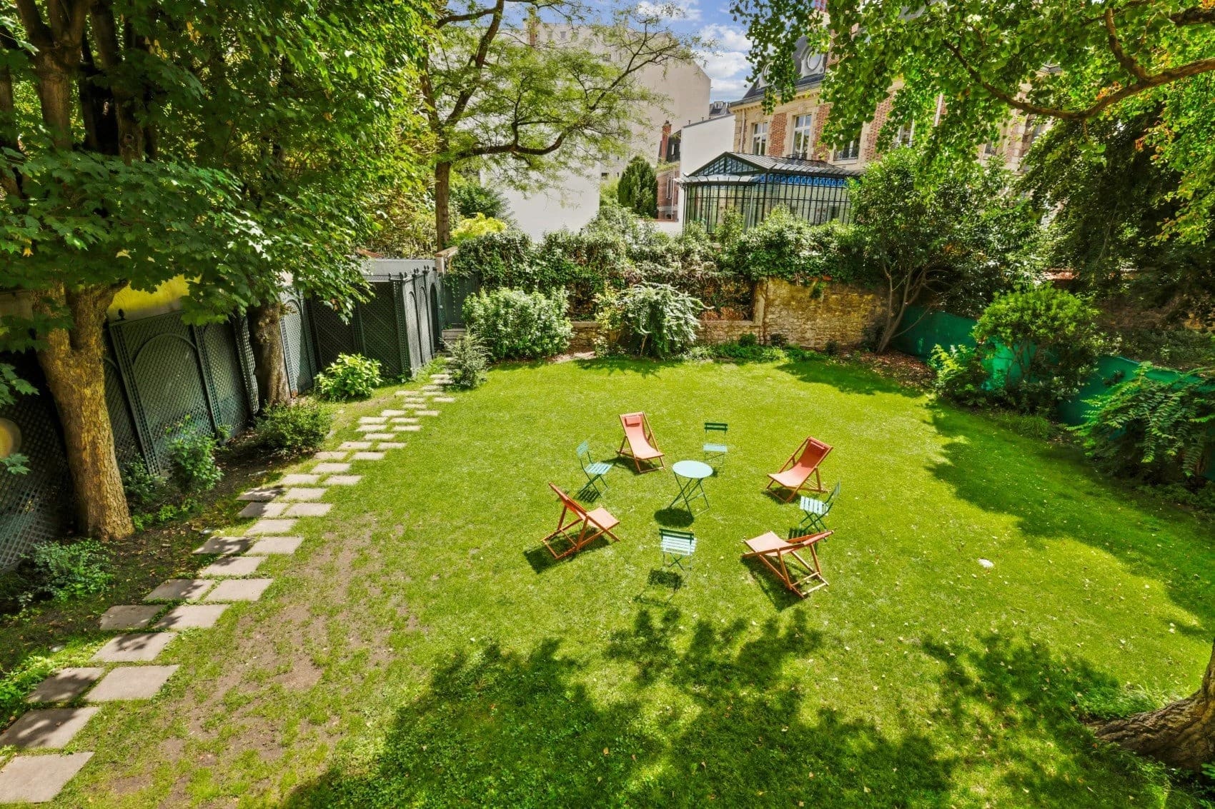A: Yes, the property features a rare and spacious enclosed garden, providing a private outdoor retreat in the heart of Paris.
