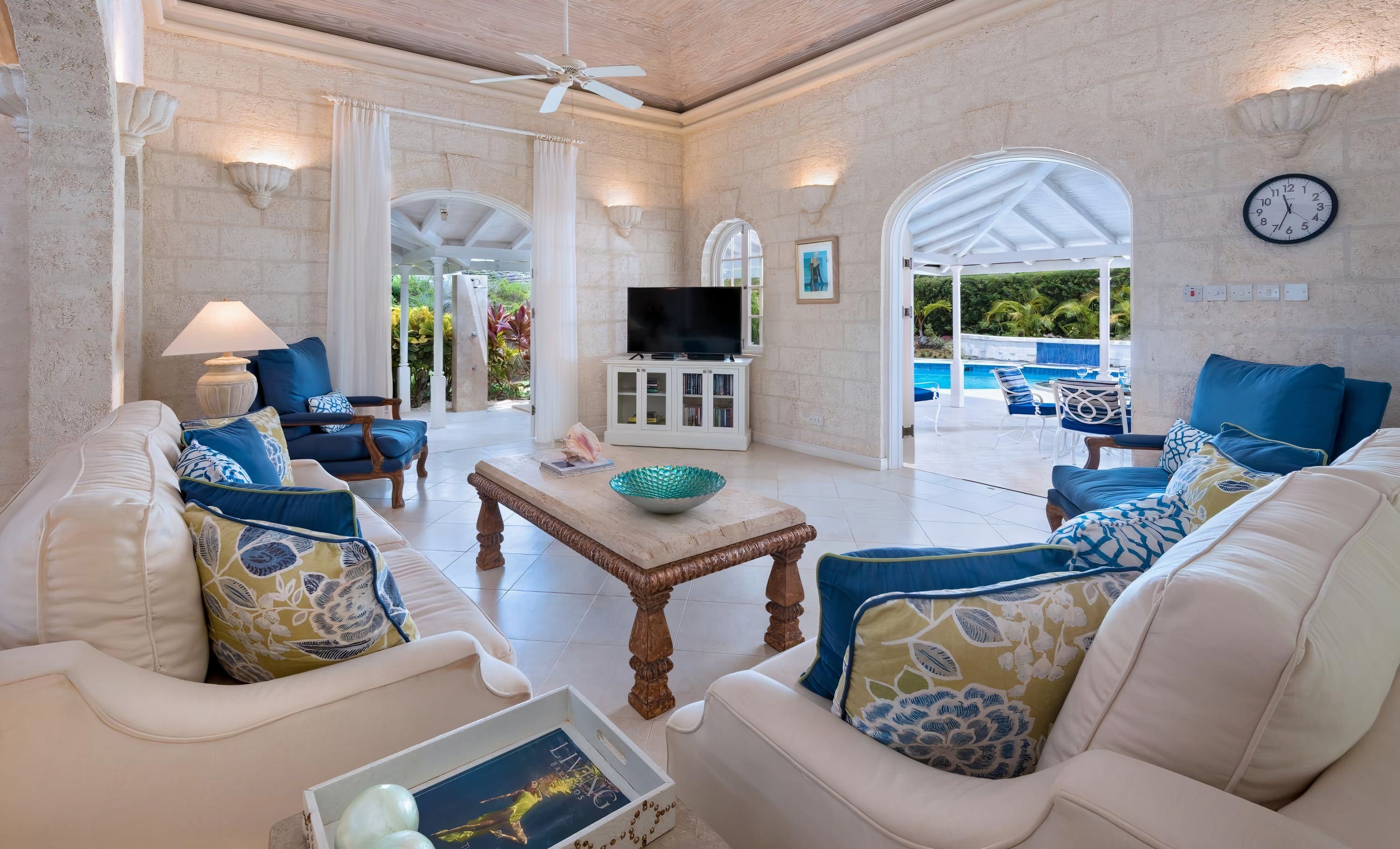 The villa accommodates up to 12 guests comfortably, with six bedrooms and bathrooms. Complimentary housekeeping is included, and parking is available. Note the villa is spread across two floors, with stairs connecting the levels. Browse our luxury villa rentals in Barbados for more properties.