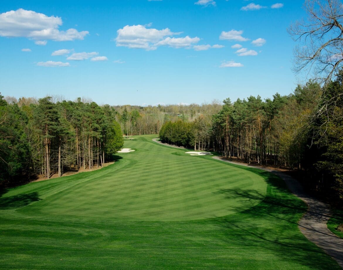 Spacious and welcoming, the house is contemporary in style. Award-winning interior designer Carlo Collacci has thoughtfully put together a chic, modern space with subtle nods to the plaids and stripes of more traditional golf resorts. Bold splashes of colour in the chef’s kitchen complement the more muted tones of the dining room, and light floods the entire home.