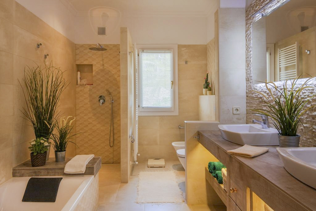 The bedrooms, all beautiful and bright make the most of their view with big windows and some with doors opening onto a balcony. All three bedrooms are double with ceiling fans and a bathroom en-suite. The en-suites vary from those with a single washbasin, bath and toilet to a double washbasin, bath, shower and toilet. There is also a guest bathroom with a single washbasin and toilet. Nothing in this villa has been overlooked.