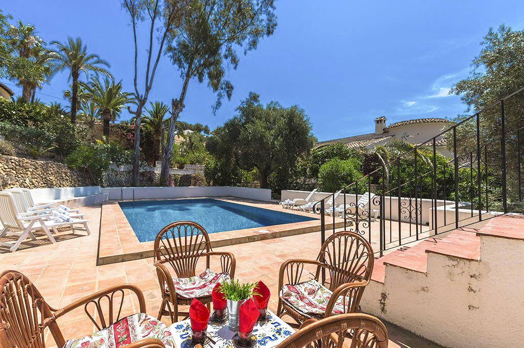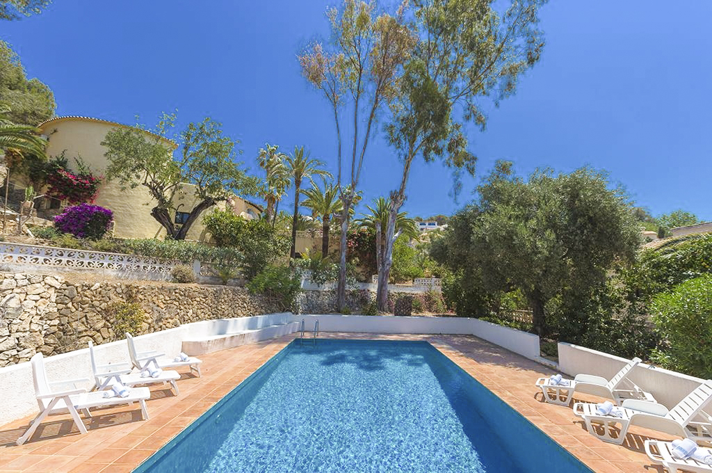 Villa Denis is an impressive looking house, set into a hillside two kilometres above Benissa’s coast and just eight kilometres from the old town centre. With its private pool and sheltered palm tree garden, it’s perfectly located for your holiday on the Costa Blanca.