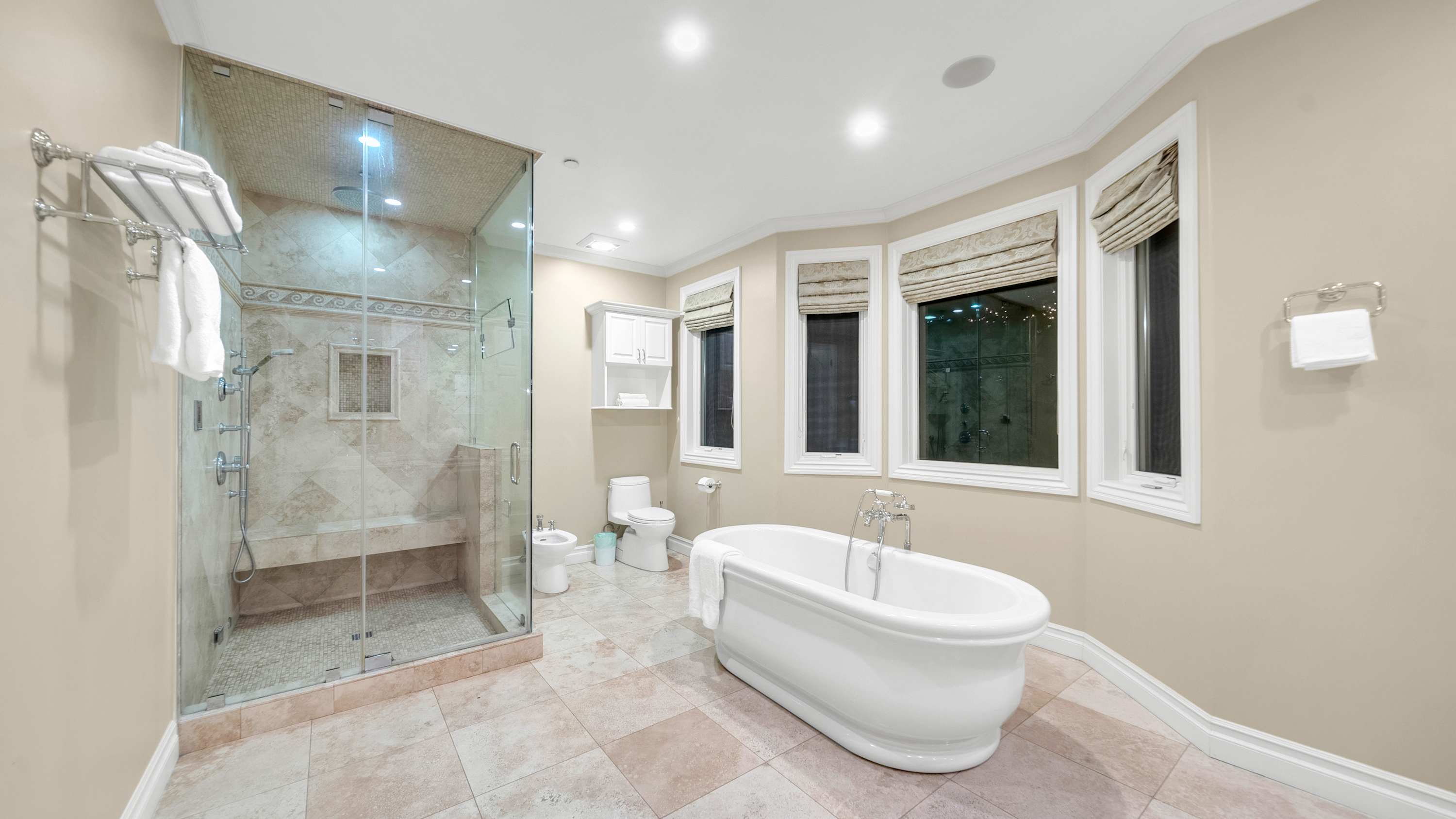 Step into a world of sophisticated design and high-end amenities. This five-bedroom house features six bathrooms, each space reflecting a consistent style of modern luxury. The open-plan living area is adorned with chic furnishings, while the state-of-the-art chef’s kitchen invites culinary creativity. The penthouse bedroom serves as the crown jewel, boasting a spa-style bathroom and a stunning glass wall that frames the LA skyline.