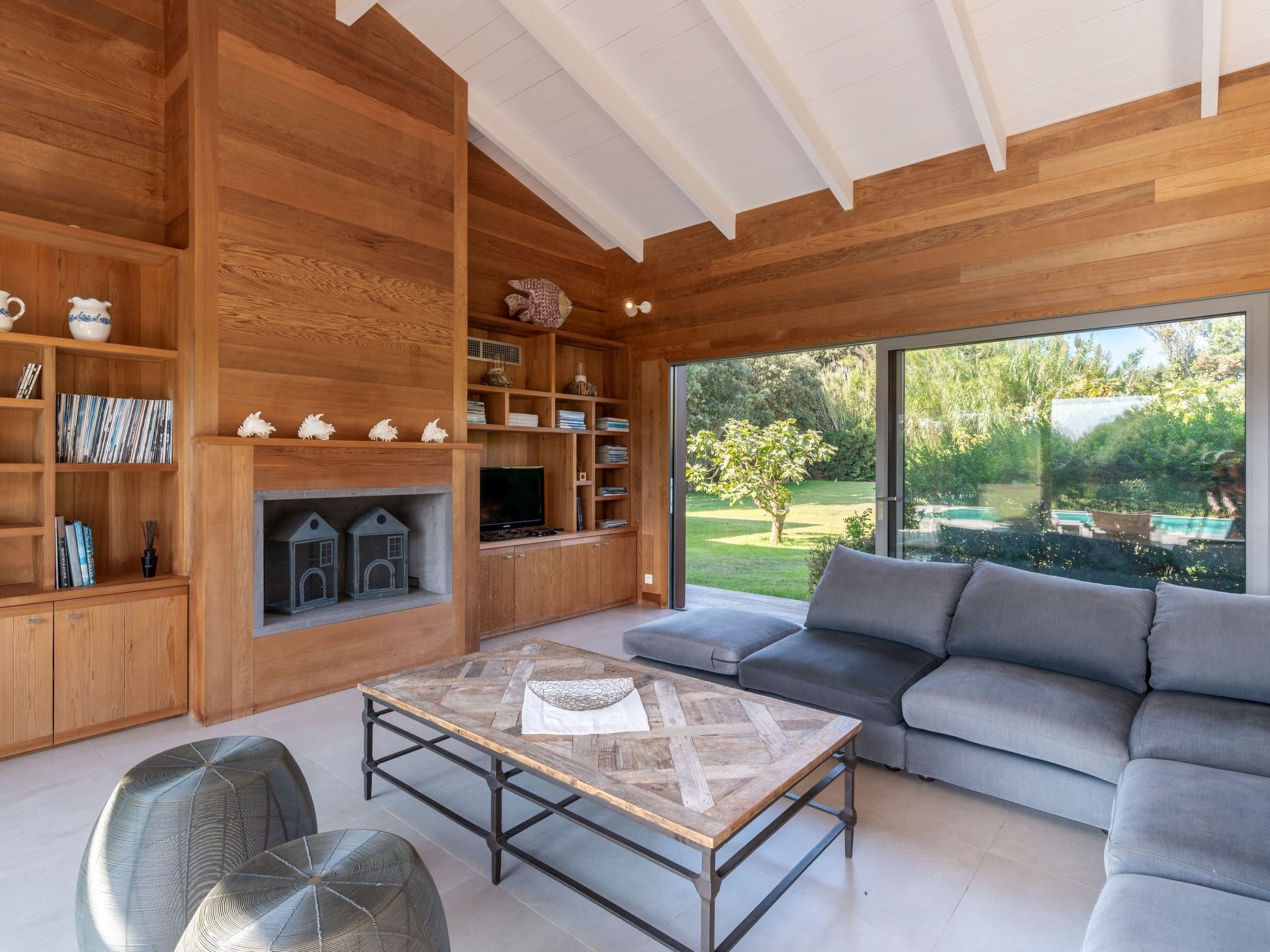 The villa’s crowning glory is its magnificent outdoor space, centered around a spectacular angular swimming pool measuring 6 x 12 meters with a depth of 2.1 meters. Available from April through October, the pool area is perfectly complemented by a generous 50m² terrace furnished with elegant outdoor dining sets and comfortable deck chairs for ultimate relaxation.