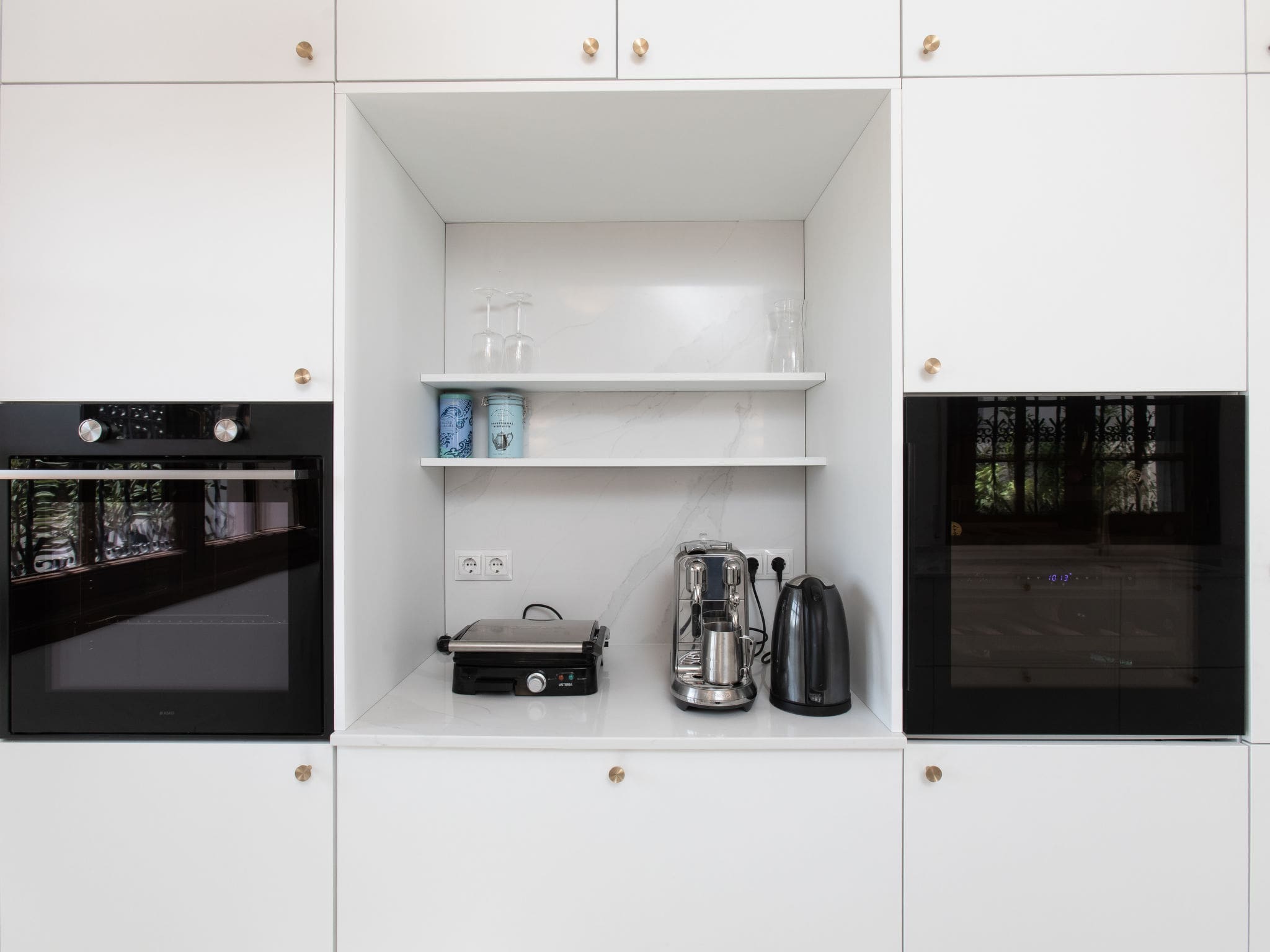 Spread across 342 square metres of beautifully appointed living space, this contemporary villa showcases bright, airy interiors with sophisticated furnishings throughout. The main level features an elegant living and dining area centred around an inviting open-hearth fireplace, perfect for cooler evenings. Large windows flood the space with natural light while offering glimpses of the sparkling sea beyond. The fully equipped modern kitchen comes complete with induction hob, dishwasher, microwave and electric coffee machine, ensuring effortless meal preparation.