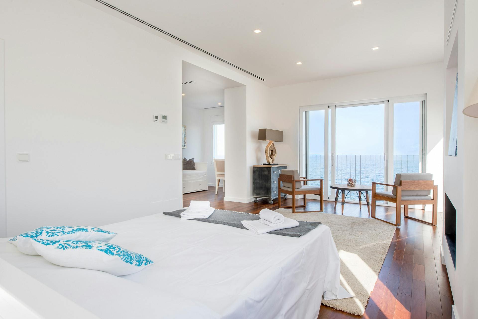 The villa comfortably accommodates 10 guests across six bedrooms, with ample parking available. Spread across three floors with multiple outdoor levels, the property ensures privacy and space for all. For more options, browse our luxury villa rentals in Spain.