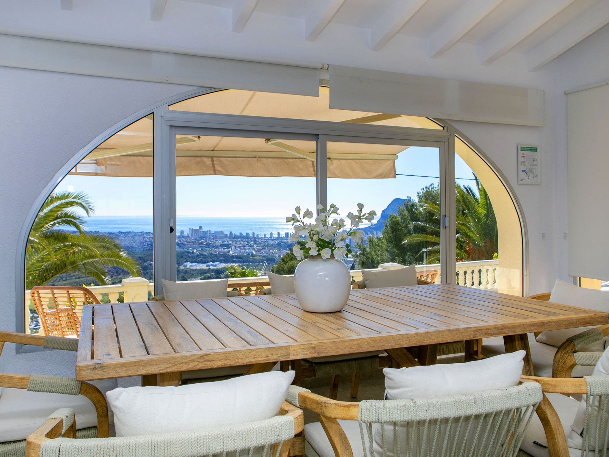 This exceptional luxury villa rental in Calpe Spain offers an elevated retreat with breathtaking panoramic sea views across the Mediterranean coastline. Casa Murteral Calpe sits in a tranquil residential area, providing the perfect balance of privacy and accessibility to the vibrant Costa Blanca attractions.