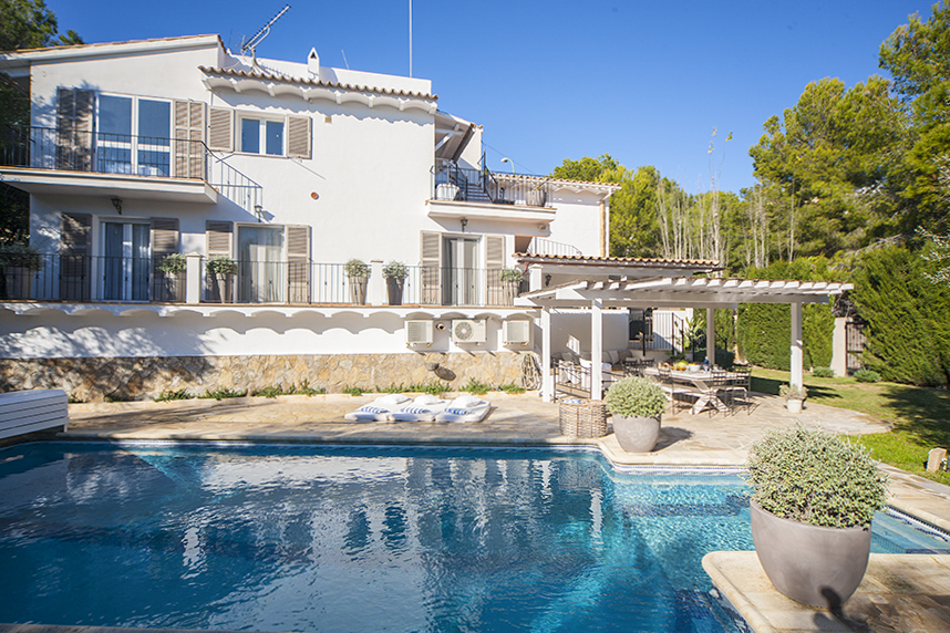 This welcoming 4 bedroom villa sits tucked away in a lovely private position in the sedate Costa De La Calma, just 18 km from the amazing city of Palma De Mallorca. Surrounded by mature foliage, well-appointed and very pleasantly decorated, first impressions on arrival at Villa Carob are certainly appealing. Whatever that elusive quality is which makes a house an instantly welcoming home from home, it can be found here in abundance! Spending time in the sunshine in this pretty environment and enjoying the pool is exactly what holidays are all about. Located close to 3 of the most prestigious marinas on the island, Puerto Andratx, Puerto Adriano, Puerto Portals and walking distance to the local beach, this property offers everything.