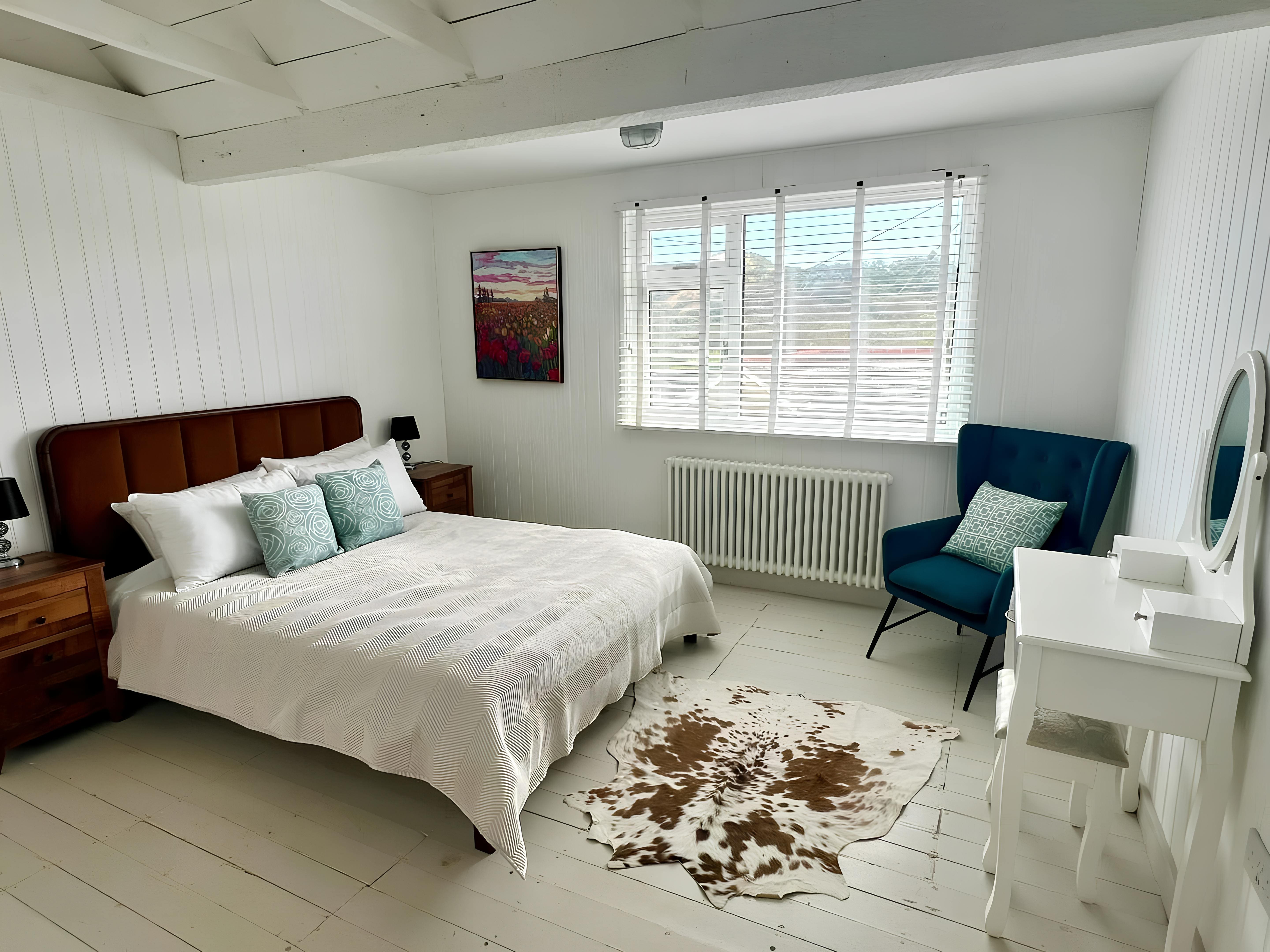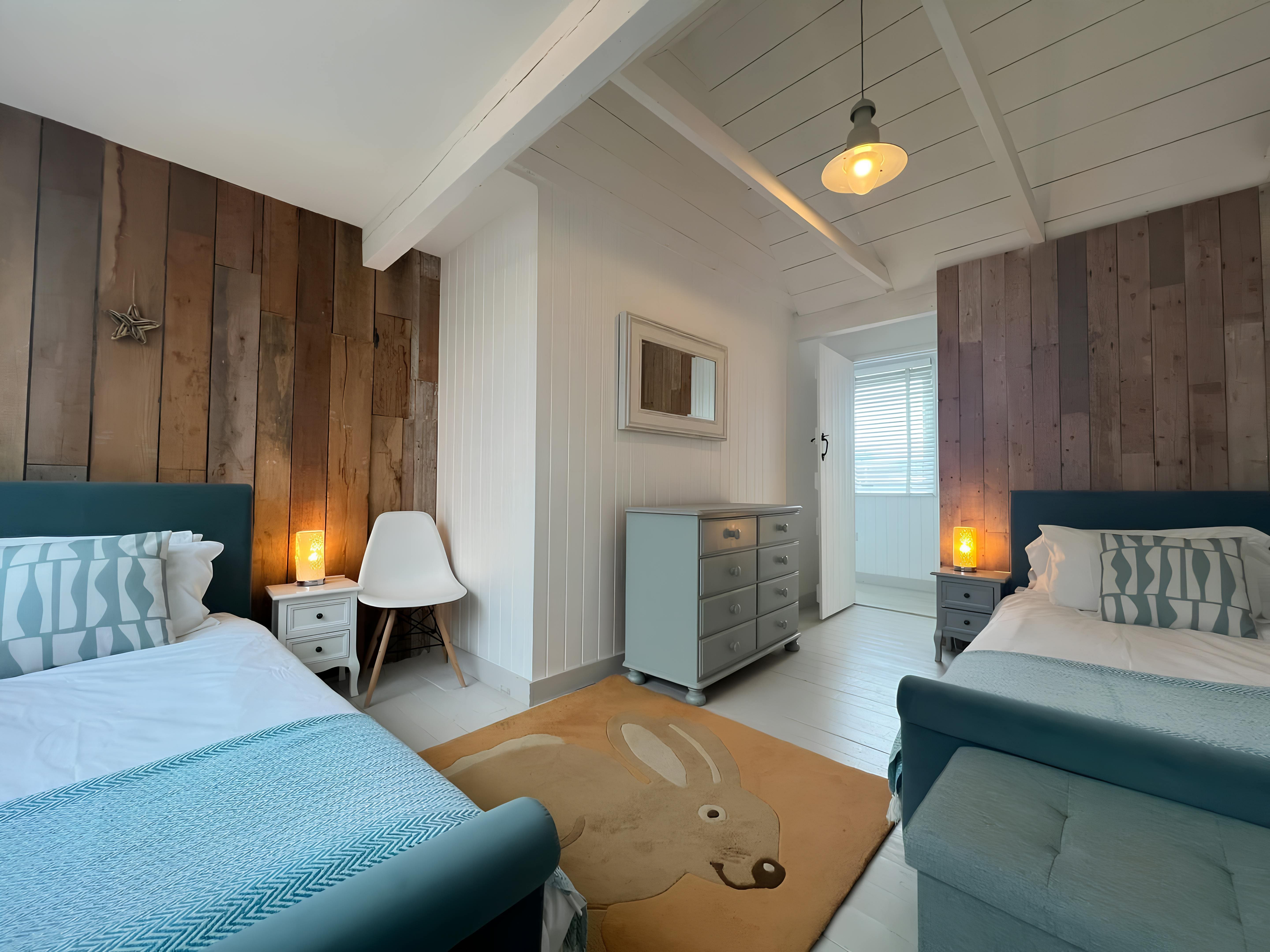 Step inside this exquisitely designed cottage, where every detail has been thoughtfully curated. The interiors boast a charming mix of reclaimed and antique materials, creating a revitalized seaside chic atmosphere. With wood-panelled walls and floors, comfortable leather sofas, and a cozy wood-burning stove, the living space is both stylish and inviting. The kitchen is fully equipped, perfect for preparing family meals, and the dining table doubles as a convenient workspace. Each of the five bedrooms offers plush bedding and blackout blinds, ensuring restful nights for all guests.