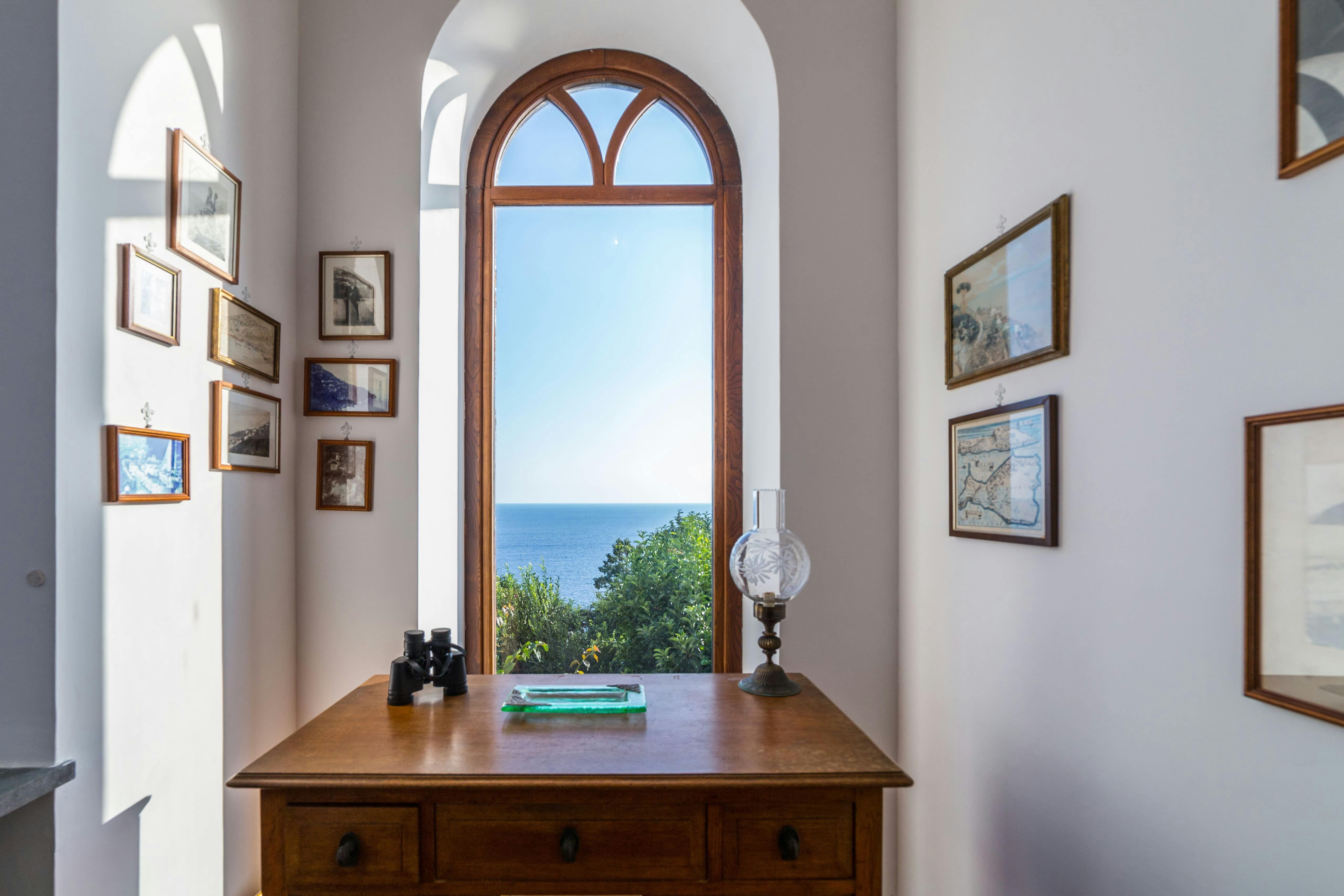The outdoor areas are nothing short of spectacular. Multiple terraces provide panoramic views of the shimmering sea, perfect for sipping an aperitif as the sun sets. The seasonal swimming pool offers a refreshing escape, while the private beachfront deck invites you to dip into the azure waters or embark on a coastal adventure by boat. Enjoy alfresco dining surrounded by lush gardens, taking in the beauty of the Amalfi Coast.