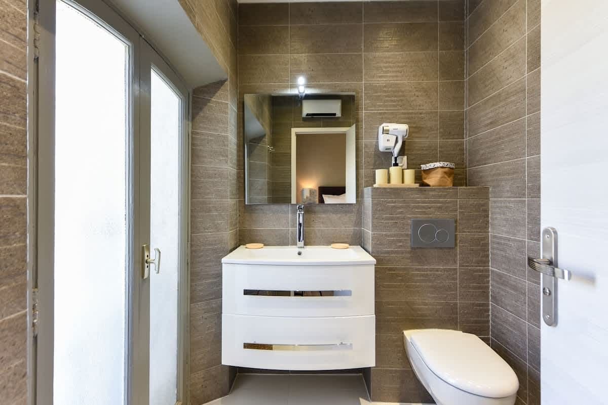 Step inside this chic retreat where modern design meets timeless elegance. The apartment features two beautifully appointed bedrooms, each offering a serene sanctuary with plush bedding and ample storage. The compact yet fully equipped kitchen is perfect for preparing quick meals, complete with modern appliances and sleek finishes. Although there is no dedicated living room, the apartment’s clever layout ensures comfort and convenience, ideal for guests who love exploring the vibrant city of Cannes.