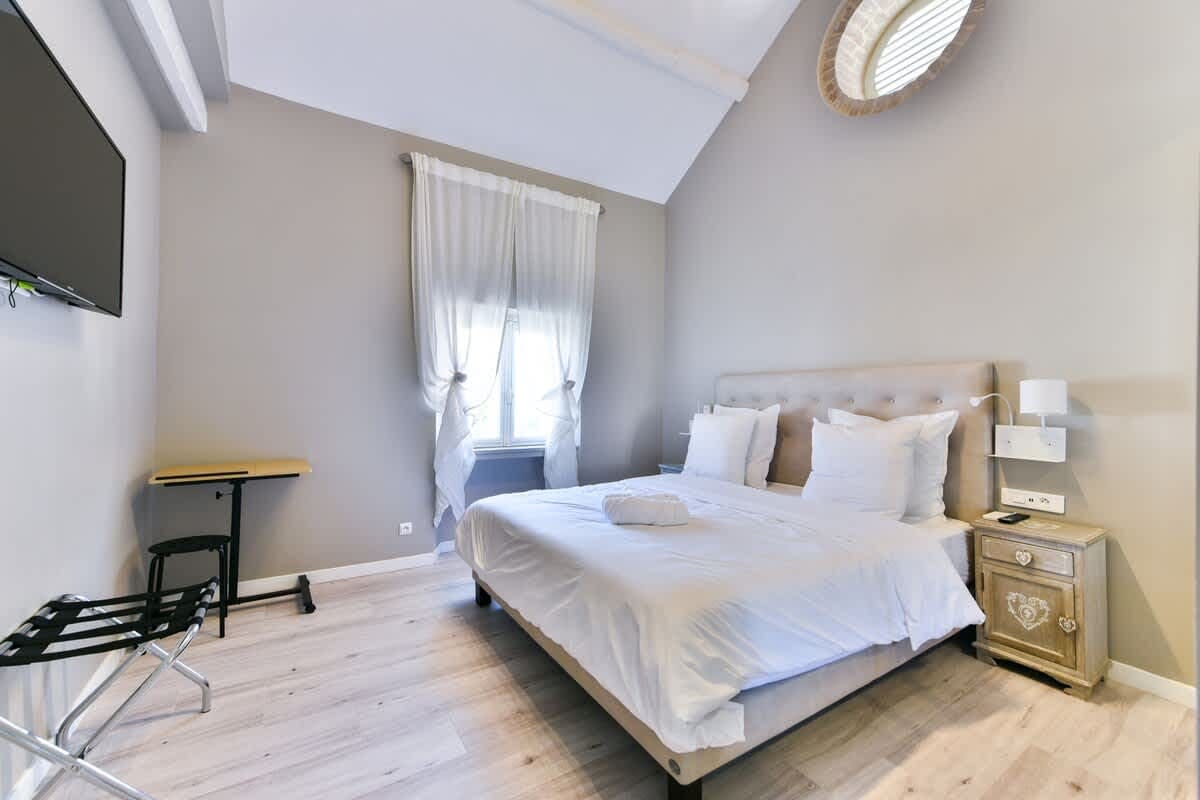 Accommodating up to four guests, this two-bedroom, one-bathroom apartment provides a cozy yet sophisticated atmosphere. Complimentary housekeeping ensures a seamless experience during your stay. Please note that the property is near a main road, which may result in occasional noise. For more options, browse our luxury villa rentals in France.