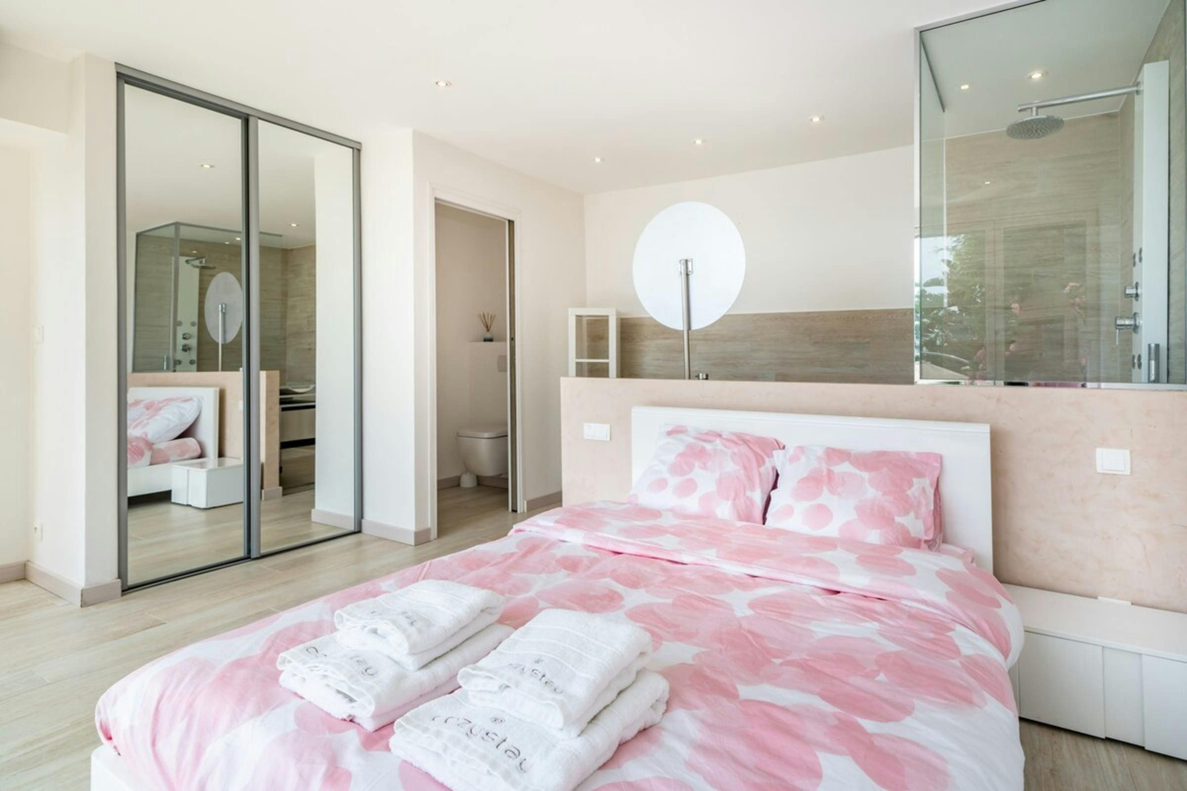 Accommodating up to ten guests, the villa features five bedrooms and four bathrooms. With parking space for up to five cars, we recommend hiring a car to explore the area fully. While not all bedrooms and bathrooms have been photographed, rest assured that their quality matches the rest of the home. Browse our luxury villa rentals in France for more exquisite properties.