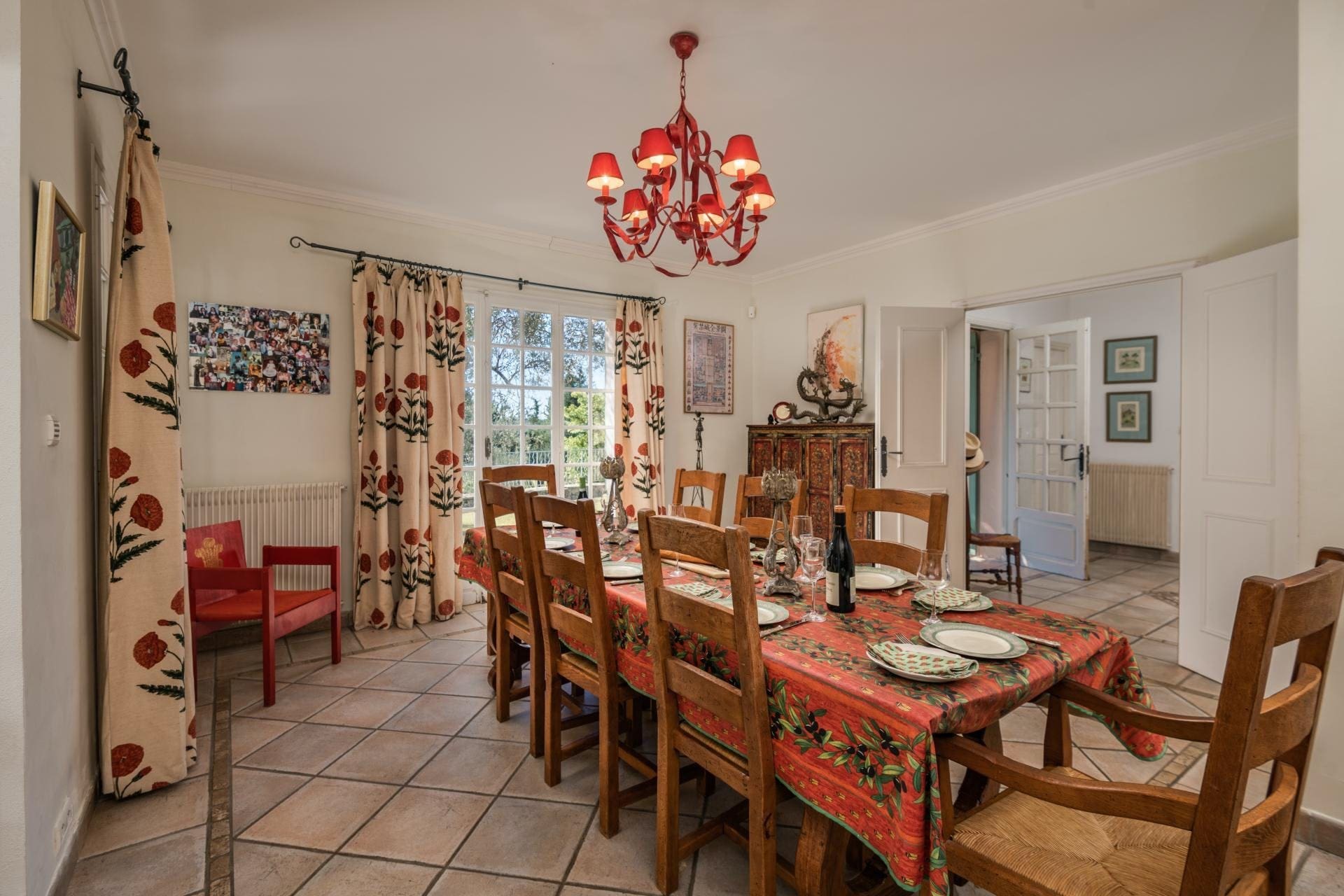 The villa’s interior is a harmonious blend of Provençal charm and modern luxury. With six well-appointed bedrooms, the property comfortably accommodates up to ten guests. The spacious living areas are adorned with tasteful furnishings and large windows that bathe the rooms in natural light. The fully equipped kitchen invites culinary exploration, whether you’re preparing a casual breakfast or a gourmet dinner. Each bedroom is designed for comfort, featuring plush bedding and elegant décor, ensuring restful nights after days of exploration.
