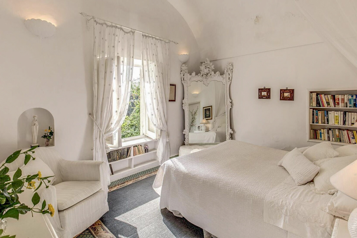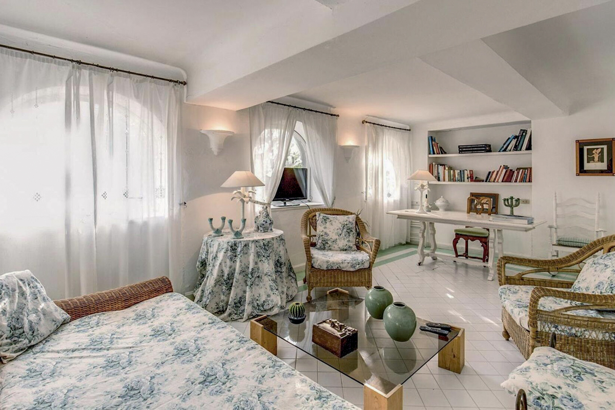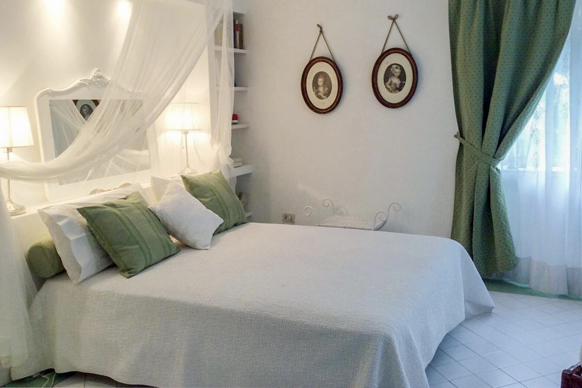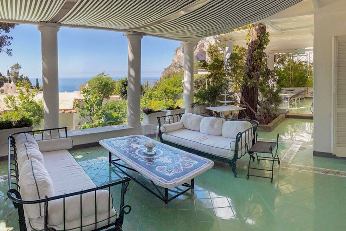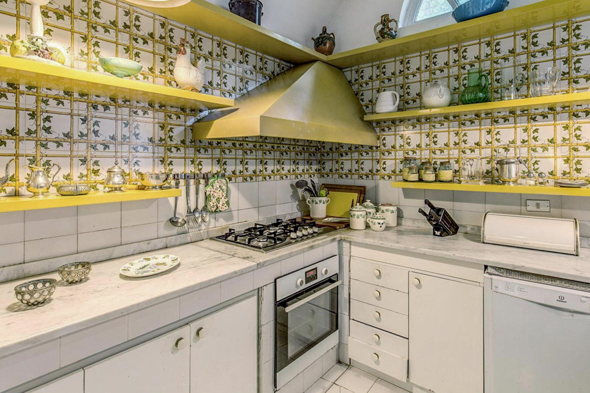 Cyathea is a stunning holiday home immersed in greenery in a delightful corner of Capri, an island in southern Italy. Built in the early 1950s and recently renovated, the bright, airy villa is projected in a typical Caprese style. It is surrounded by exotic vegetation, including maritime pine, prickly pears, and olive and cypress trees, all offering much-appreciated shade for relaxing. Inside, 17th-century prints adorn the walls and fascinating antiques and furniture from the 19th century are scattered around. These time-honoured features are elegantly combined with contemporary items. Guests can unwind in the large living room with sofas and a TV corner, from where there is direct access to the idyllic terrace immersed in greenery. All except one of the bedrooms are located on the first floor and have double or French beds, allowing various groups to find the most comfortable sleeping solution. Most bedrooms have en-suite bathrooms, some even with free-standing claw-foot bathtubs. The kitchen is equally charming, with bright green tiles and all the equipment necessary to whip up a feast. The outdoor terrace is lovely and is perfect for drinking your morning coffee. Elsewhere on the grounds, you can find more quiet corners with garden furniture. You’ll find it hard to leave this paradise, but the island has secret coves and sea caves you wouldn’t want to miss. The most famous one is the Blue Grotto, which boasts crystal clear turquoise waters and is just a 15-minute walk from the property. A small beach for snorkelling and swimming is also nearby when you want to refresh yourself on a hot day, and a street full of restaurants, nightclubs and boutiques is also within reach for fashionable evenings out. Marina Grande, the main town and port on the island, is where you’ll most likely start your holiday, as it boasts a harbour from where boats and ferries leave for the mainland. It’s an excellent place for strolling along the promenade, shopping for souvenirs or enjoying an aperitif in the many bars.
