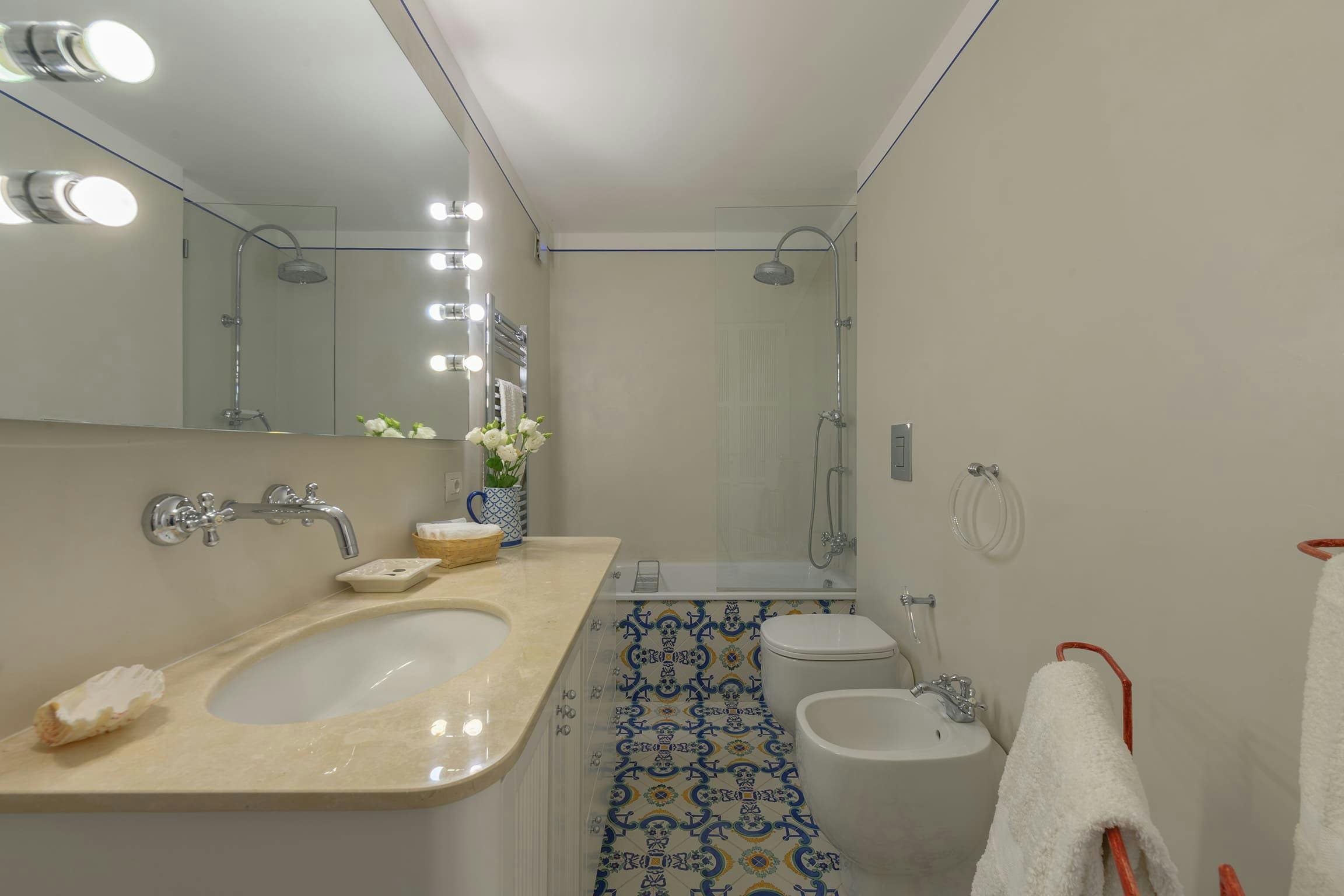 The outdoor areas of this Sorrento villa are equally captivating. A private swimming pool, available from 1st April to 31st October, serves as a focal point for relaxation and entertainment, offering panoramic views of the sea and the enchanting Faraglioni Island. Guests can enjoy alfresco dining on the terrace or find tranquility in the secluded lemon grove, where the scent of citrus fills the air. The villa’s proximity to the beach, just a short walk away, enhances its allure as a seaside sanctuary.