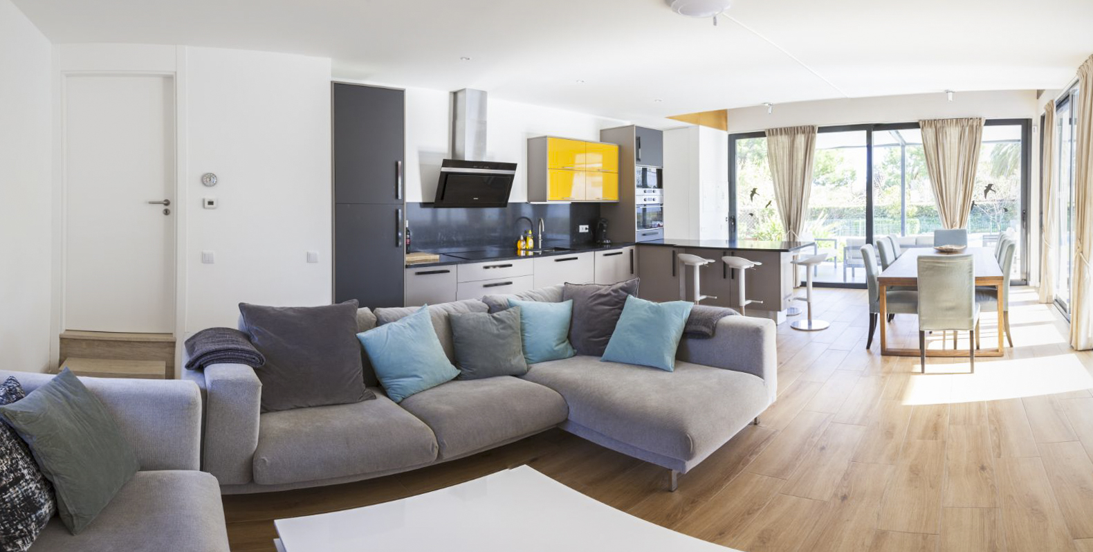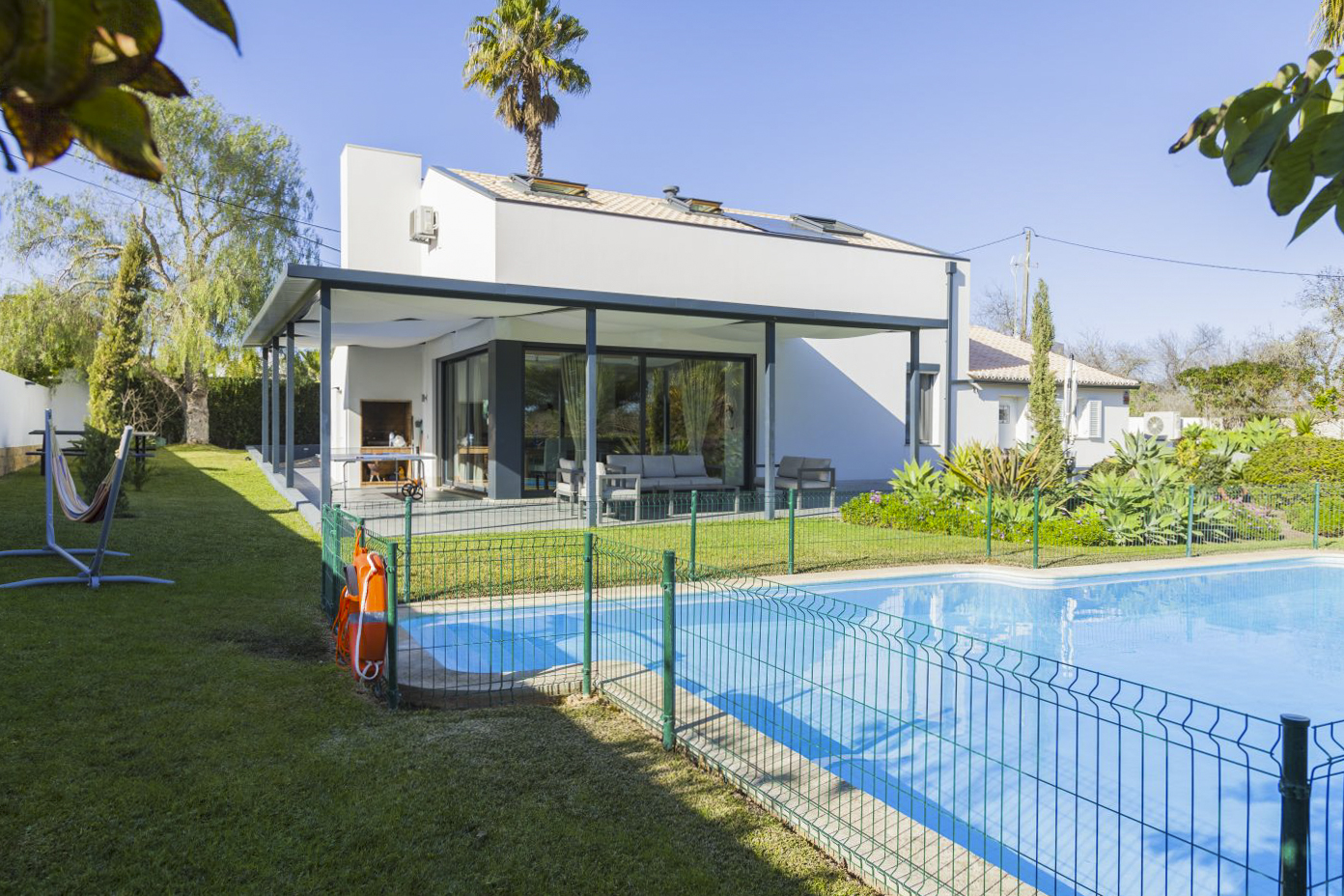 Enjoy hours of sunshine from morning until evening on the terrace, with your own private pool, discreetly fenced to ensure your full privacy. The large landscaped garden, lined with palm trees, epitomises Mediterranean style, whilst the spacious terrace with a barbecue and dining area add to the outside charm – the perfect spot to enjoy an alfresco meal with family and friends. There are plenty of sunbeds for all guests, ensuring complete relaxation.
