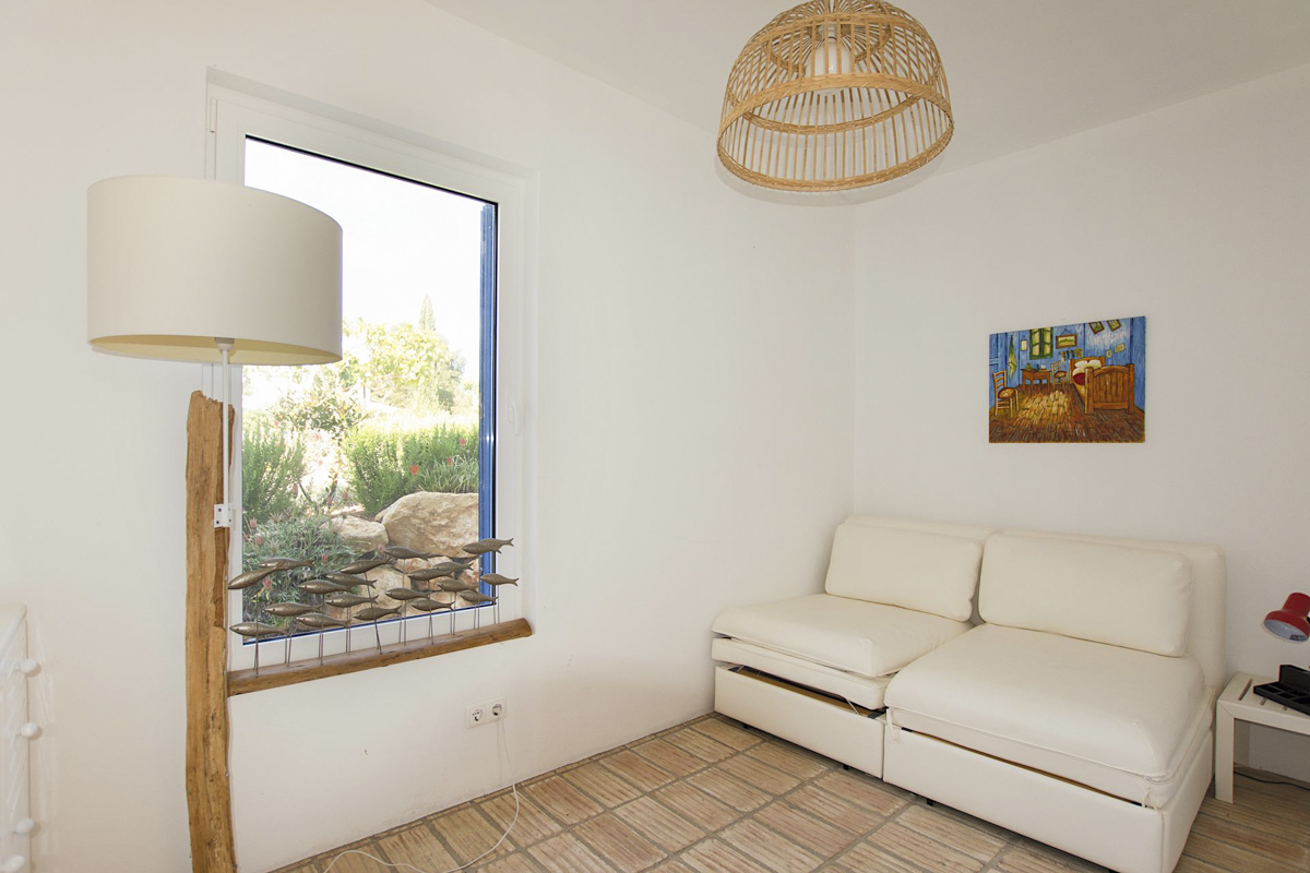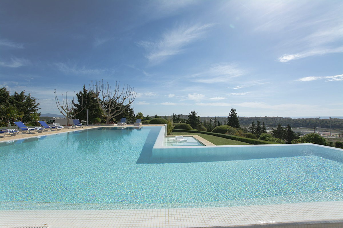The final suite is located next to the covered outdoor lounge area. It is a suite with two sofa beds and an ensuite bathroom with a walk-in shower. Villa Alfie enjoys a sweeping garden and numerous terraces where you have many choices for dining and lounging. The covered dining and lounge terrace is located next to the swimming pool. It is beautiful with gorgeous contemporary dining and lounge furniture and an outdoor kitchen and barbecue area. There are several other porches where you can disappear with your morning coffee or holiday read. The swimming pools are exceptional. The main pool is large at 12m x 6m, and just below is the 8m x 1.5m children’s pool. The pools are surrounded by loungers where you will enjoy the sensational views of the sea and marina. The garden is huge and cascades around and down from the villa. The lush lawns are fabulous for children to play with.