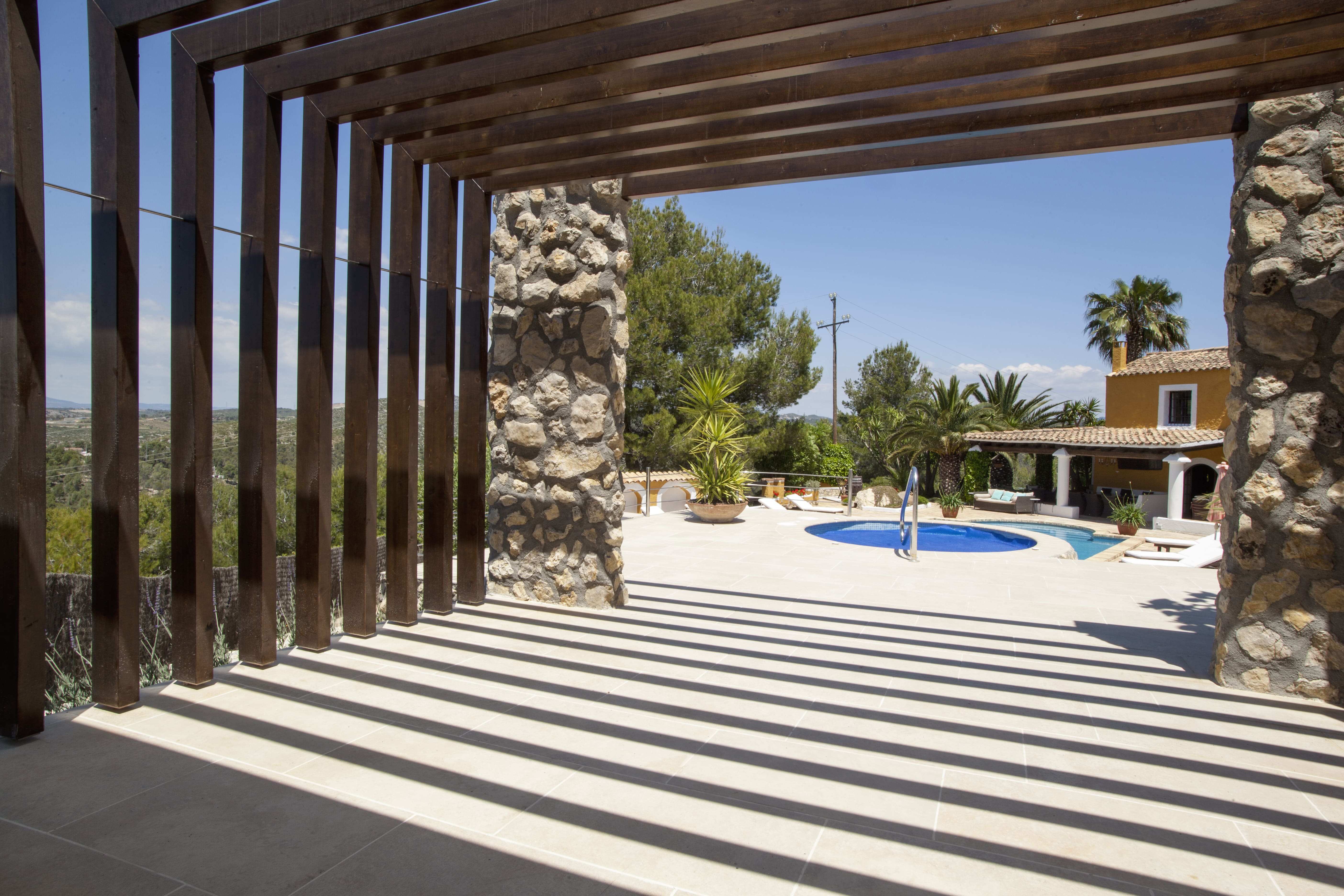 Accommodating up to 19 guests, this villa features nine bedrooms and nine bathrooms, ensuring privacy and comfort for everyone. A car is recommended due to the remote location, with ample private parking provided. Pets are welcome; please discuss with the host beforehand. Browse our luxury villa rentals in Spain for more properties.