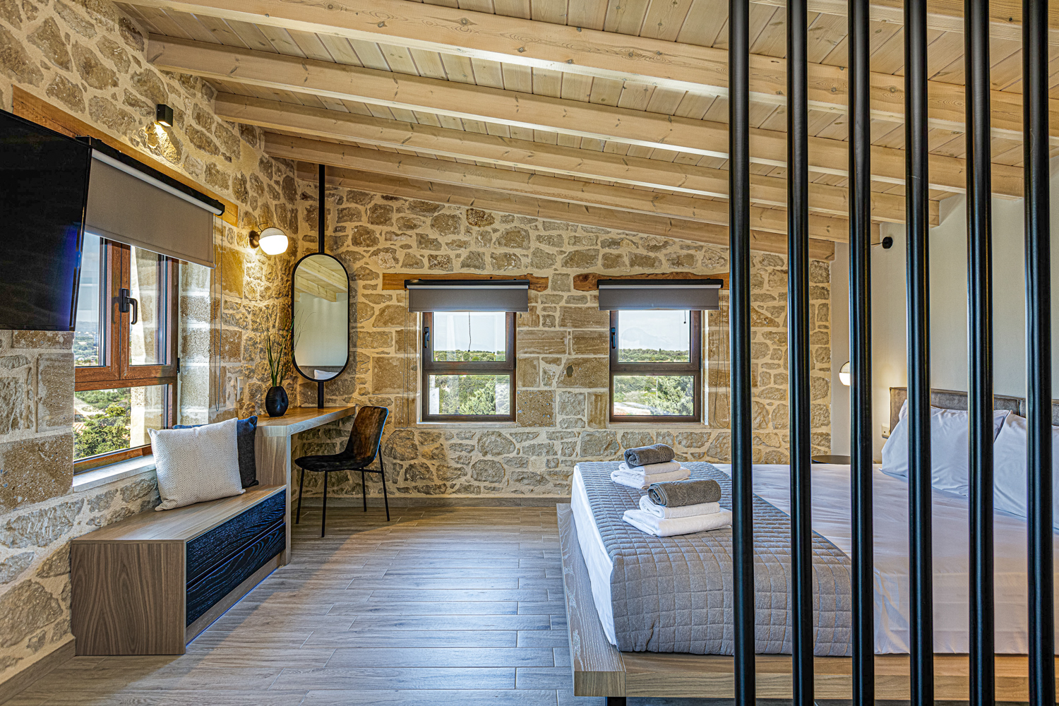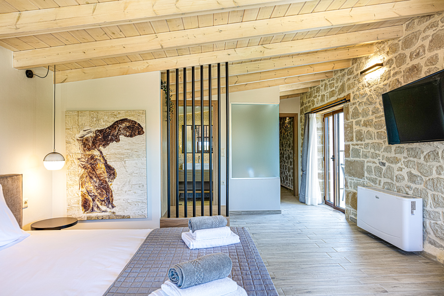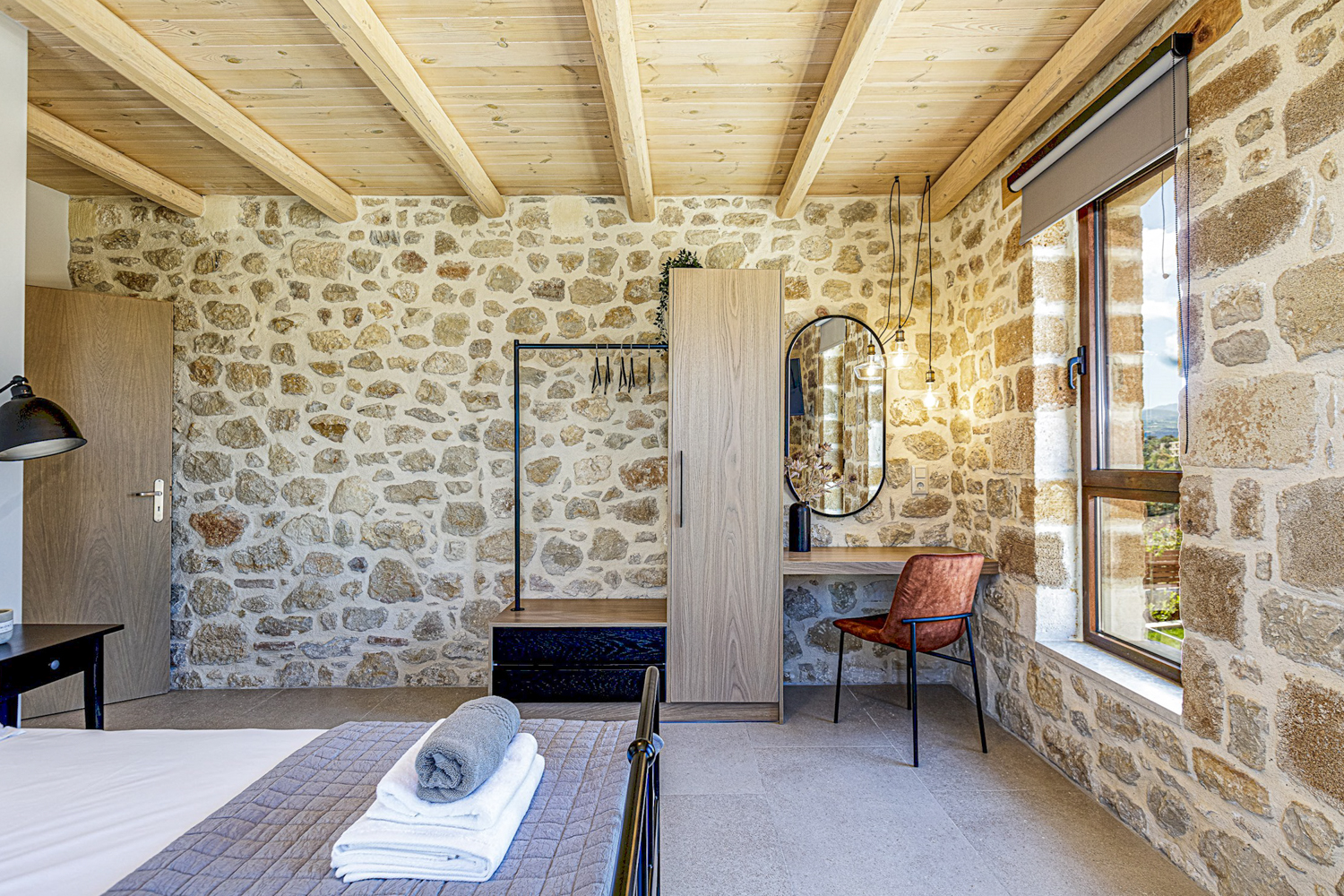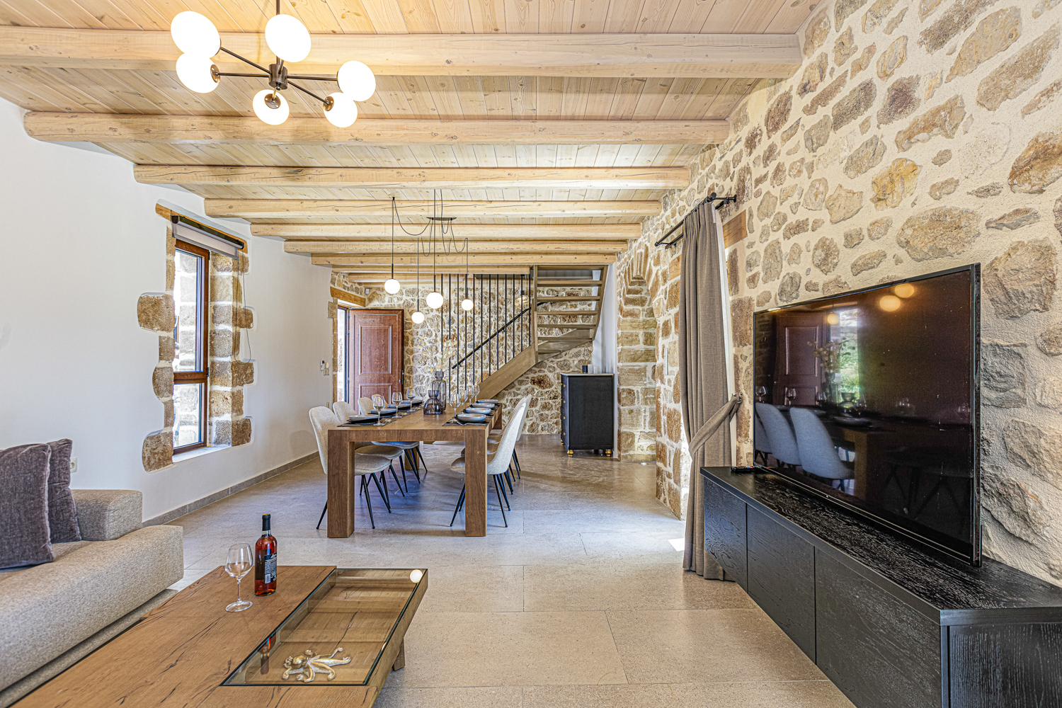 Step inside and be embraced by the inviting ambience of exposed stone walls and warm earthy tones that infuse every corner with a sense of timeless comfort. The heart of the villa welcomes you with open arms, where a spacious living room seamlessly transitions into a stylish dining area and a fully equipped kitchen, ensuring that every culinary adventure is effortlessly catered for.