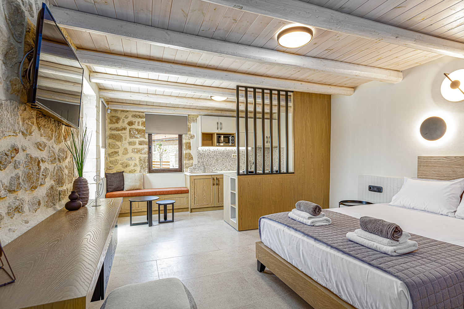 Guests can immerse themselves in the authentic Greek experience while still being within easy reach of the vibrant city of Rethymnon, just thirteen km away. Here, ancient history and modern amenities converge, offering a plethora of cultural attractions, bustling markets, and delectable dining options to explore.