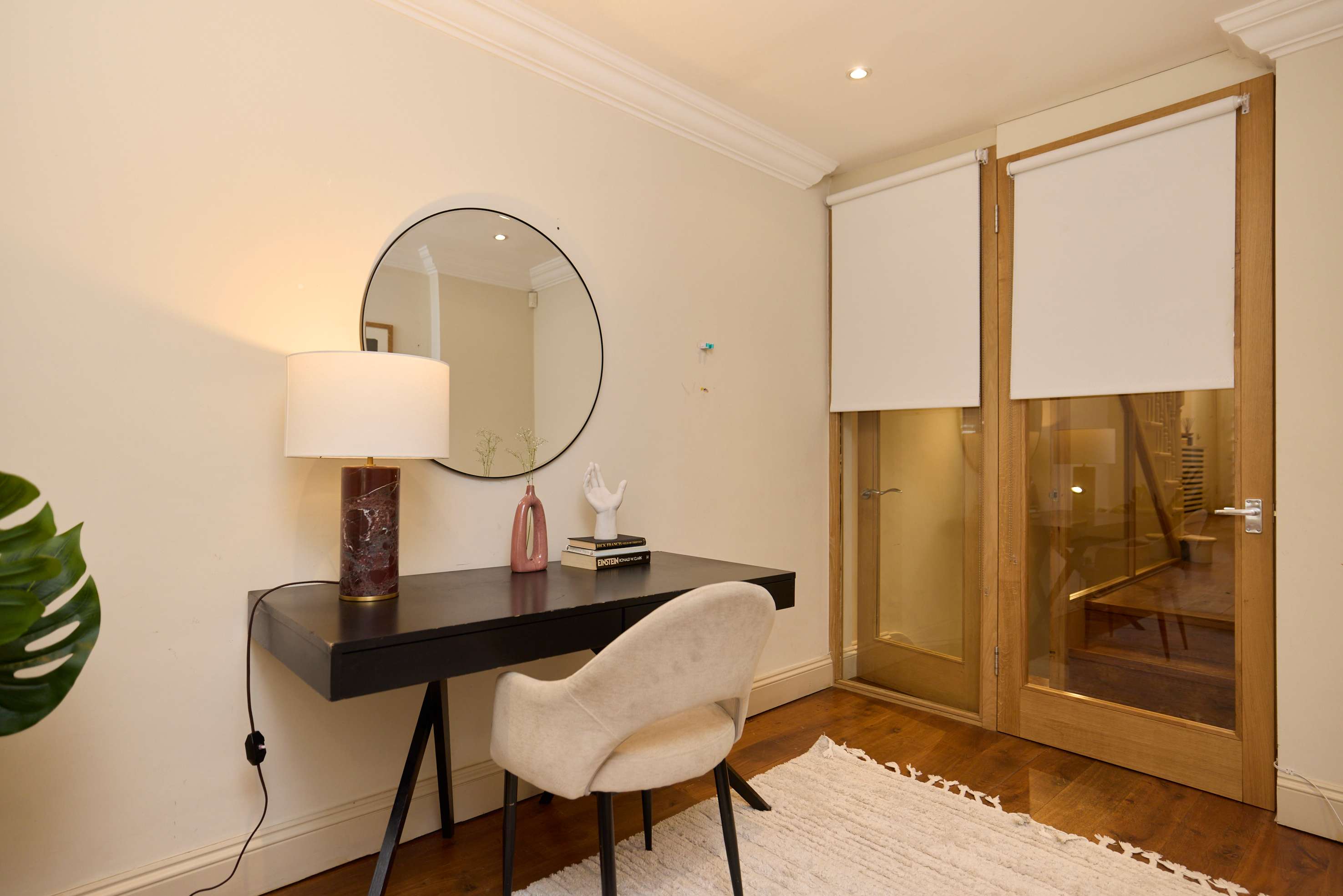 The house accommodates up to seven guests in four bedrooms, complemented by four bathrooms. Note that there are steps leading to the entrance and throughout the property, which may not be suitable for guests with limited mobility. Occasional viewings may occur during your stay, with prior notice and complimentary cleaning provided. For more options, browse our luxury villa rentals in the United Kingdom.