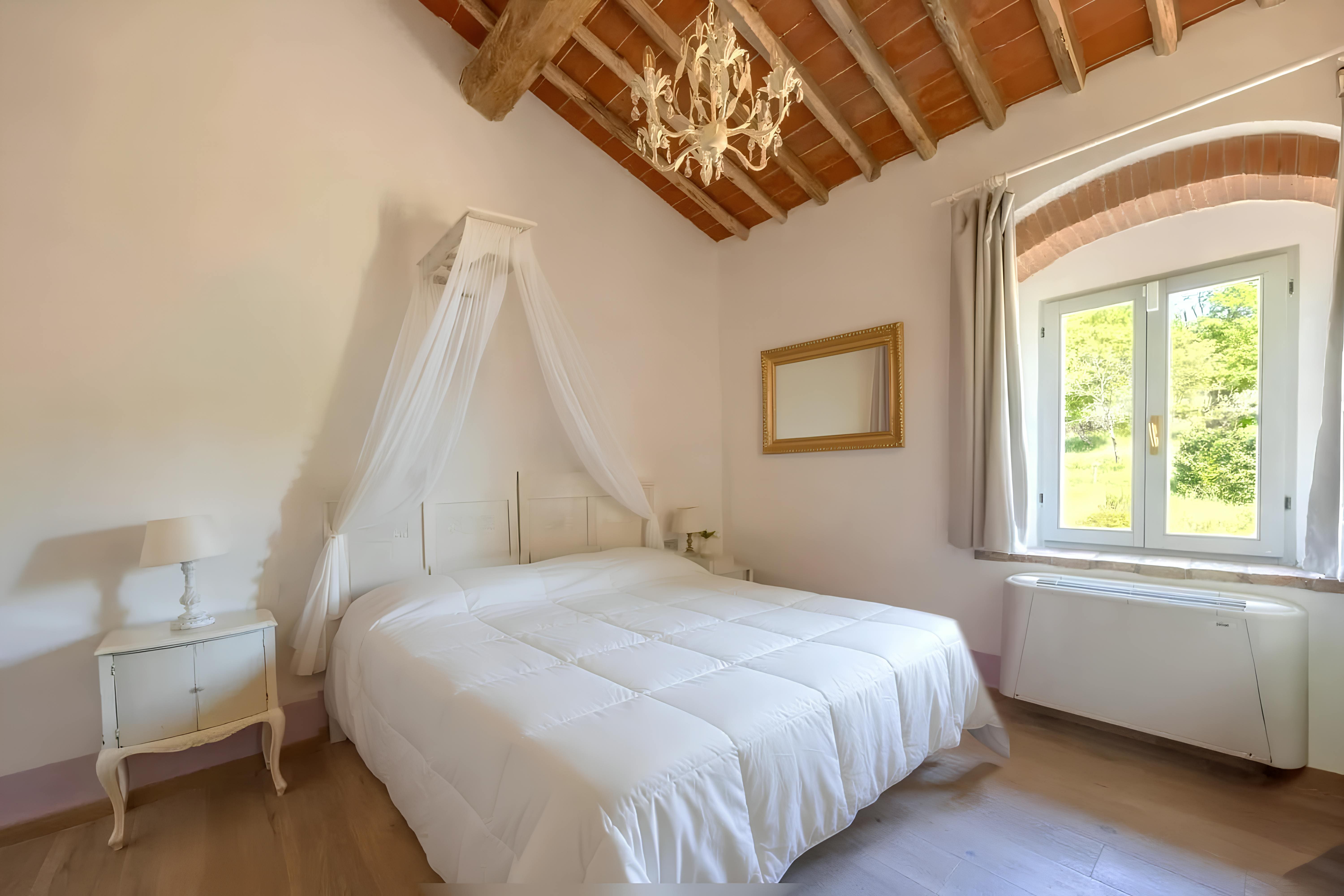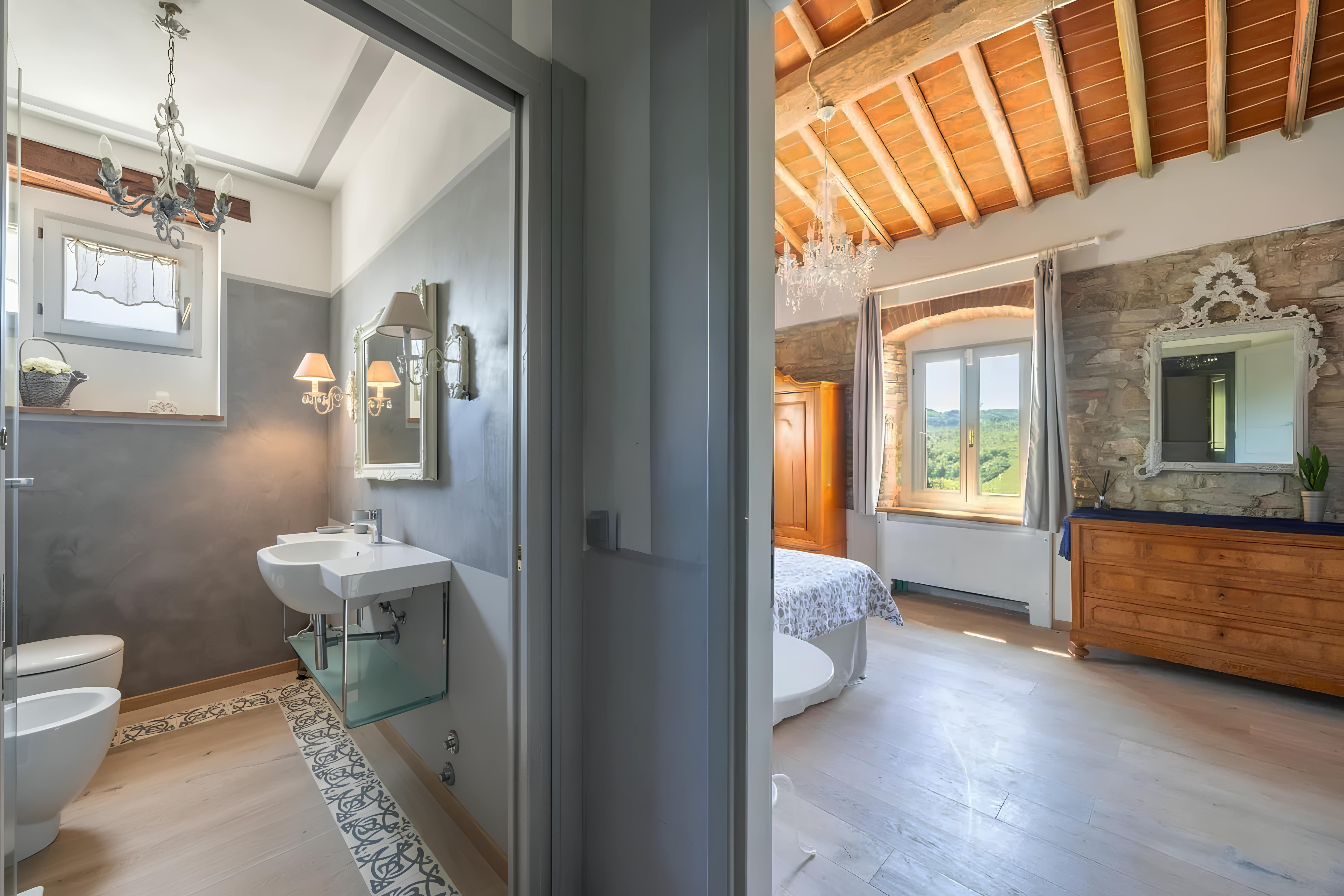 The villa’s outdoor spaces are nothing short of spectacular. Relax by the picturesque swimming pool while taking in the breathtaking views of rolling hills and lush vineyards. The expansive gardens and terraces provide ample space for outdoor dining and leisurely strolls, immersing you in the natural beauty of Tuscany.