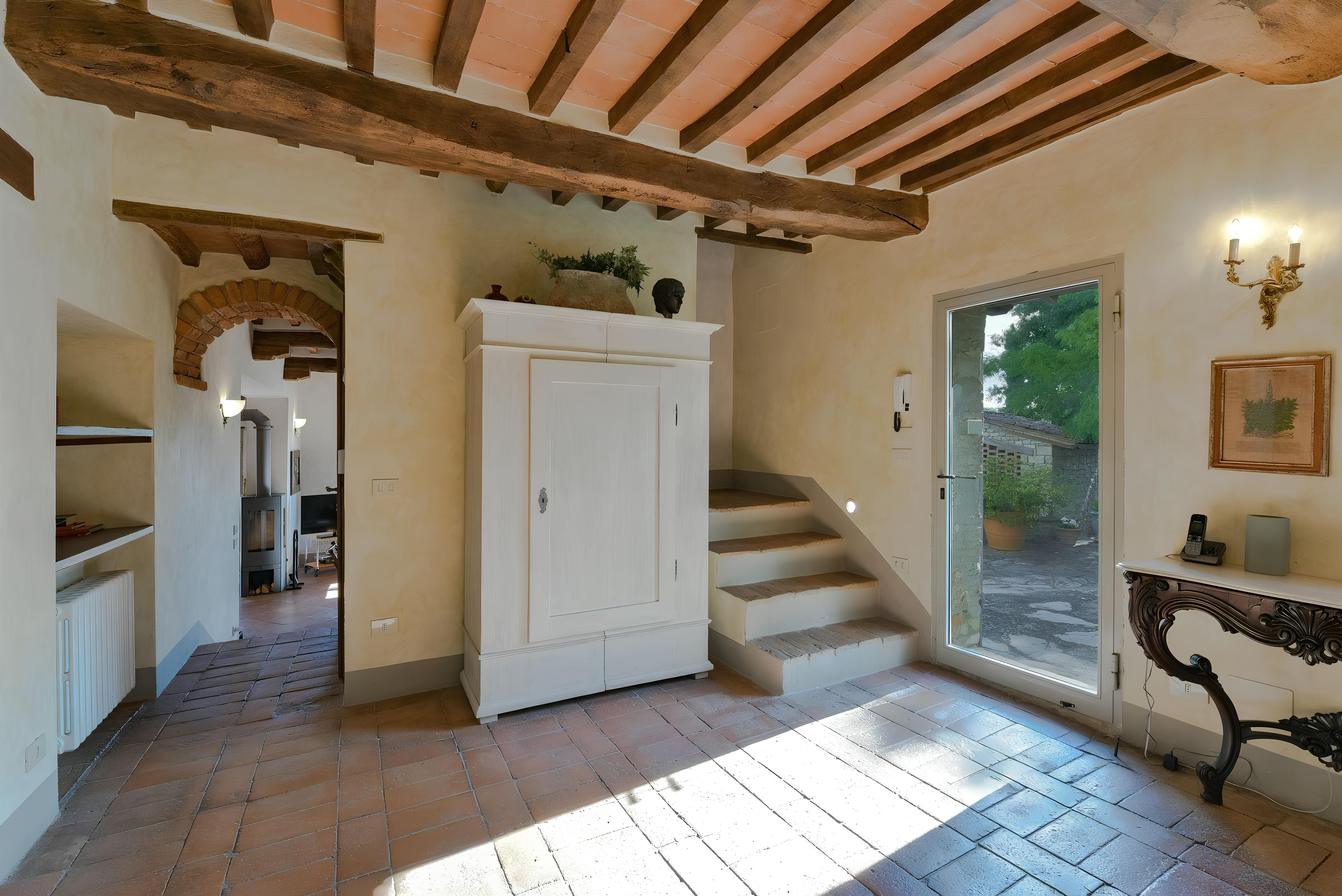 The interiors of this villa are a testament to refined elegance, featuring four spacious bedrooms and four well-appointed bathrooms, accommodating up to eight guests with ease. The main house and a separate annexe ensure privacy and comfort for all guests. The decor beautifully combines rustic Tuscan elements with contemporary luxury, creating inviting spaces where guests can unwind. The fully equipped kitchen is ready for culinary delights, while the living areas provide a cozy setting for relaxation and socializing.