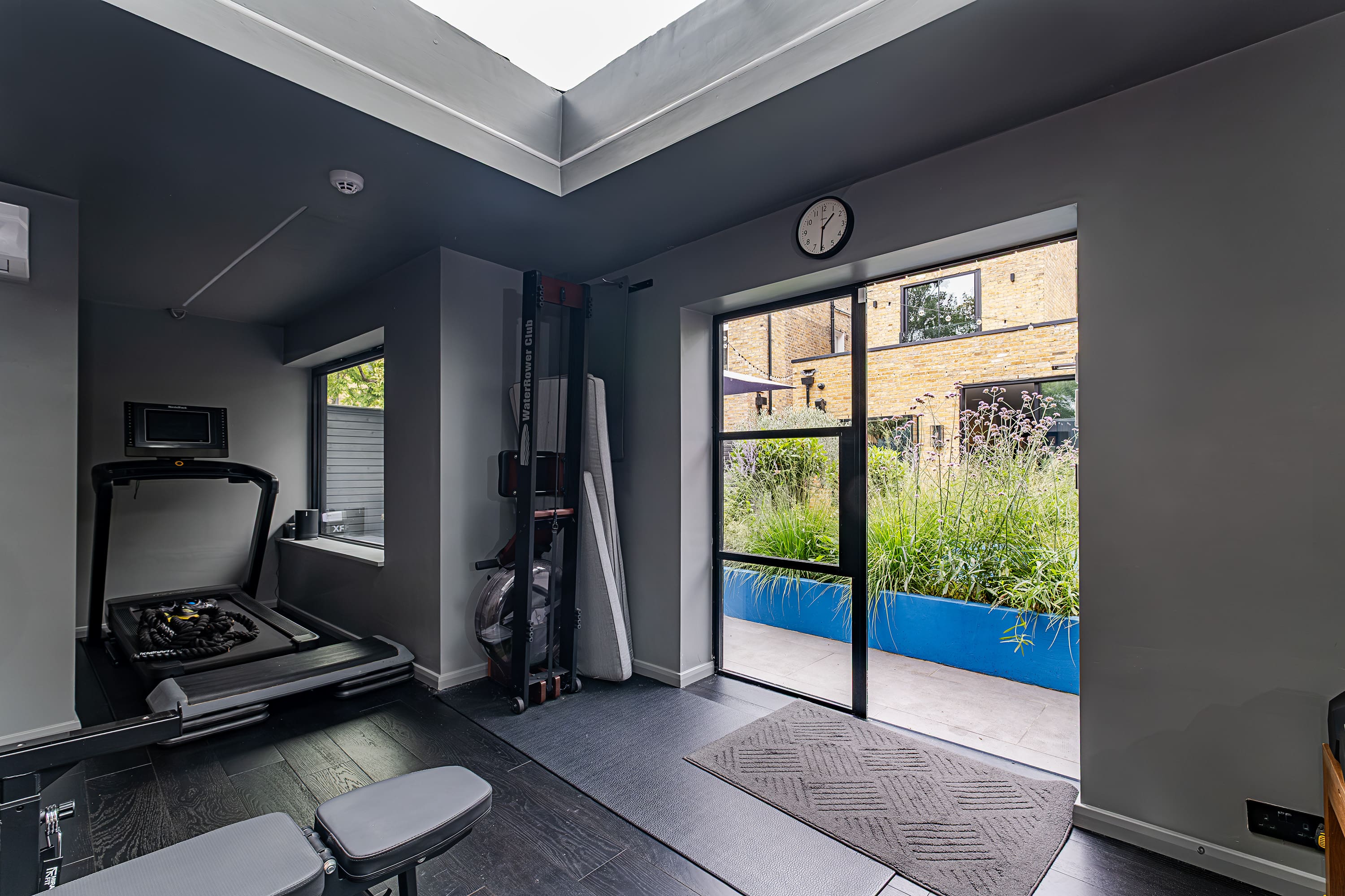The villa’s outdoor spaces are equally impressive, featuring a sunny garden where guests can unwind and enjoy the tranquility of Clapham’s ambiance. A garden outbuilding houses a private gym, allowing for invigorating workouts amidst lush surroundings. Ample off-street parking is available, ensuring convenience for those arriving by car.