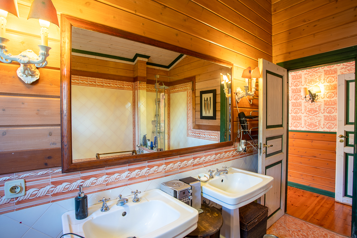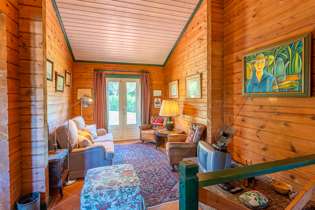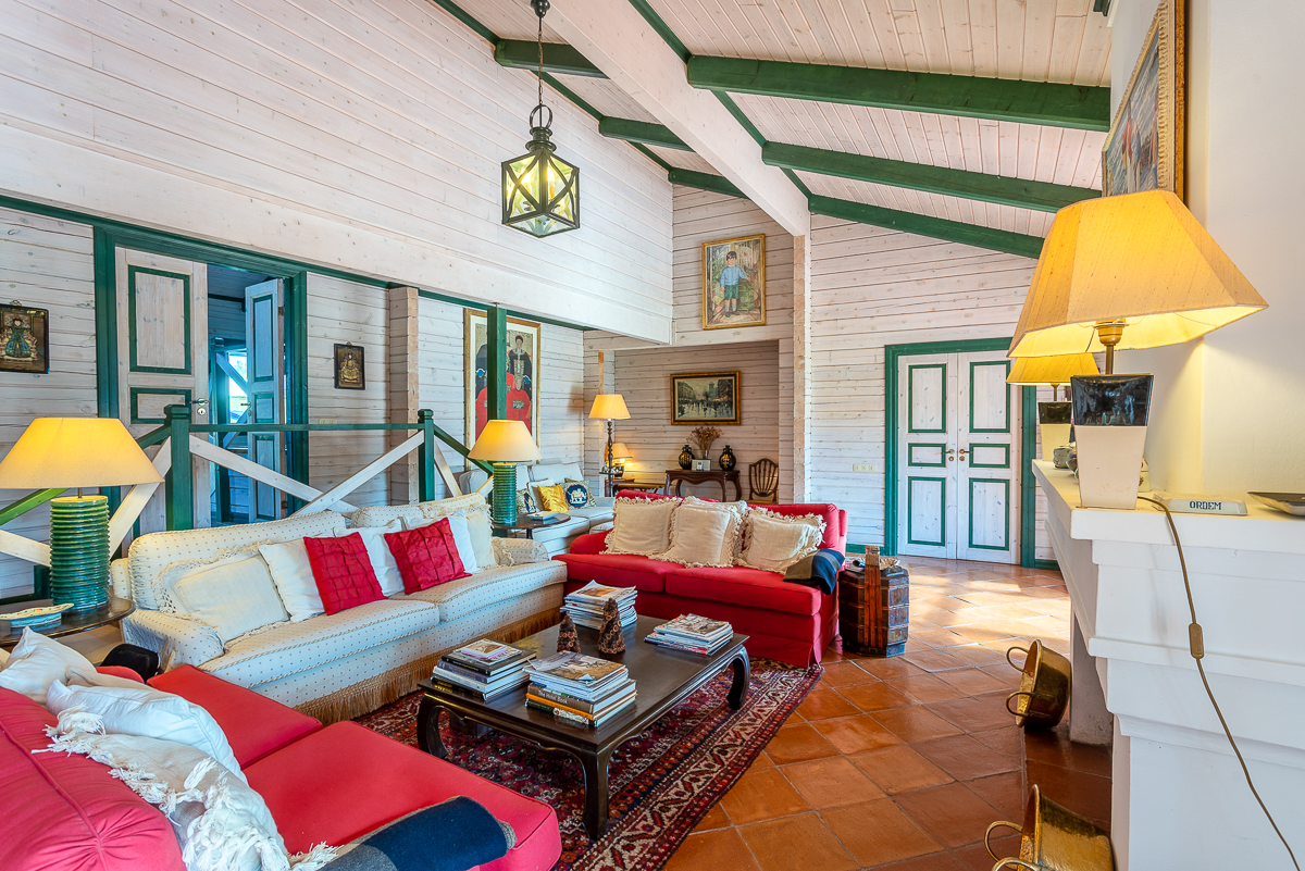Set against the majestic backdrop of the forested mountains of the park, this is a mesmerisingly elegant villa that oozes sophistication and a traditional charm. The lounge makes for a most relaxing heart of the home with five enormous sofas in front of the TV and fireplace. But the setting is what makes this room truly special: with enchanting wooden panelling across the walls and ceilings, with forest green detailing and delightful local works of art. There is a second lounge space alongside this, fitted out like a cosy snug, with a luxurious design. The colours throughout are rich and vibrant, with a vintage ambiance invoked by the magnificent furniture throughout. Dine like royalty in this exceptional formal dining room, with the same traditional wood ceiling and sublime vintage chairs for twelve, with direct garden access! And finally, to prepare these delicious feasts you’ll need this absolutely fantastic kitchen, with traditional wooden fittings, terracotta flooring and an abundance of surface space to make cooking a breeze!