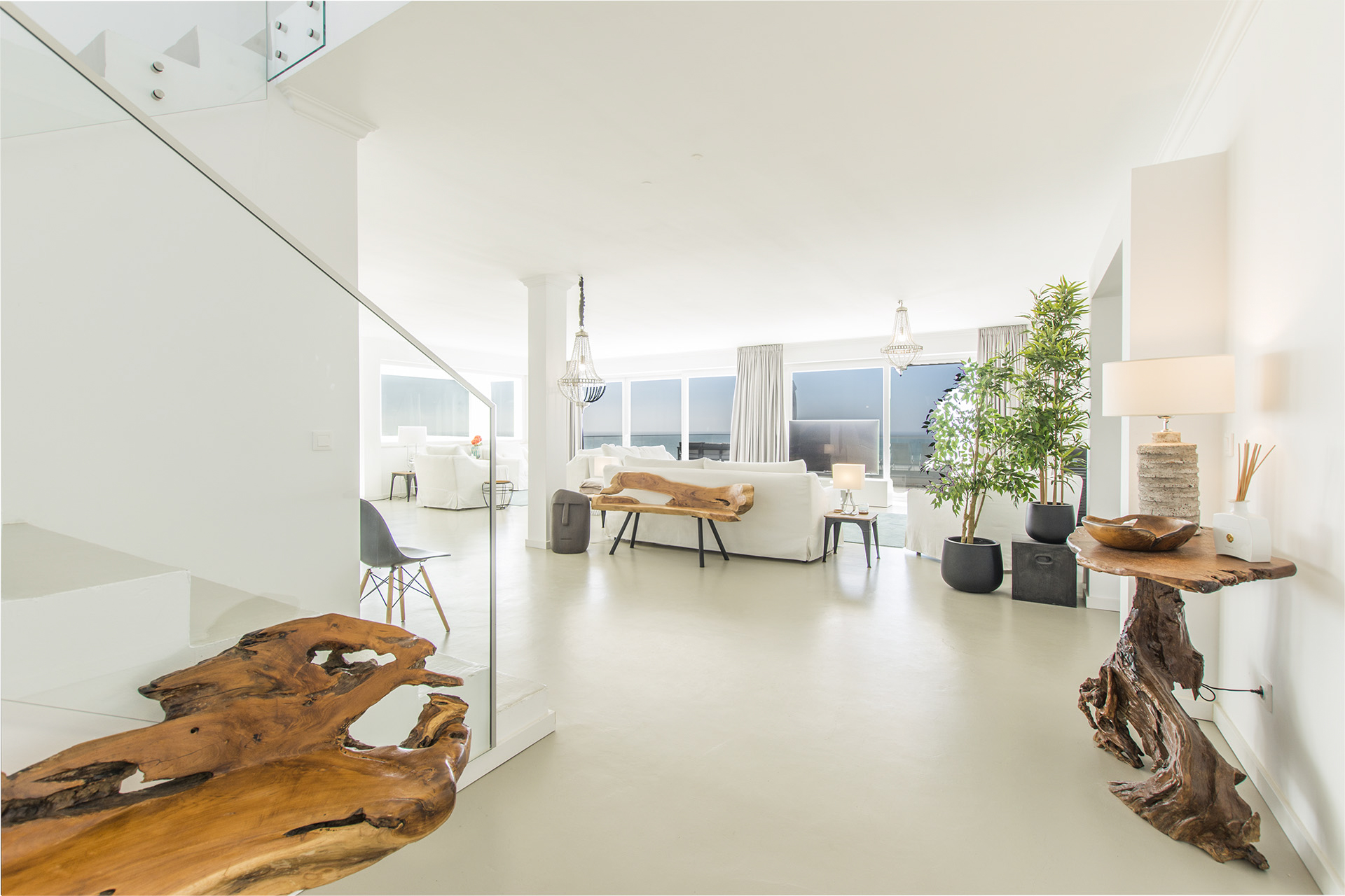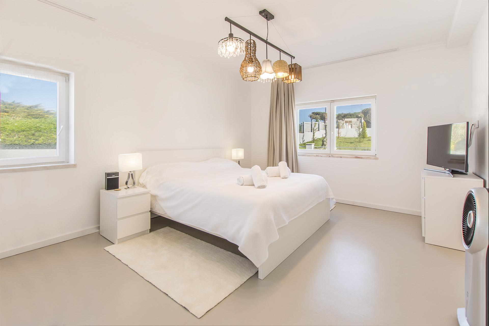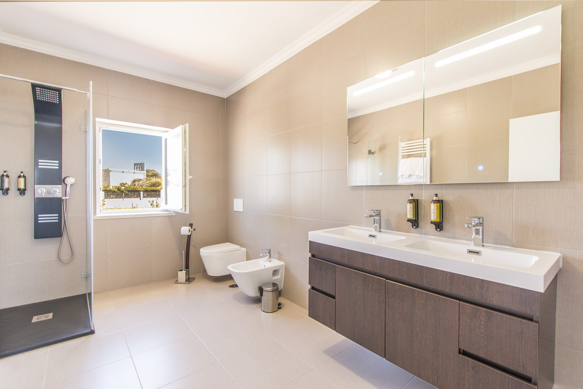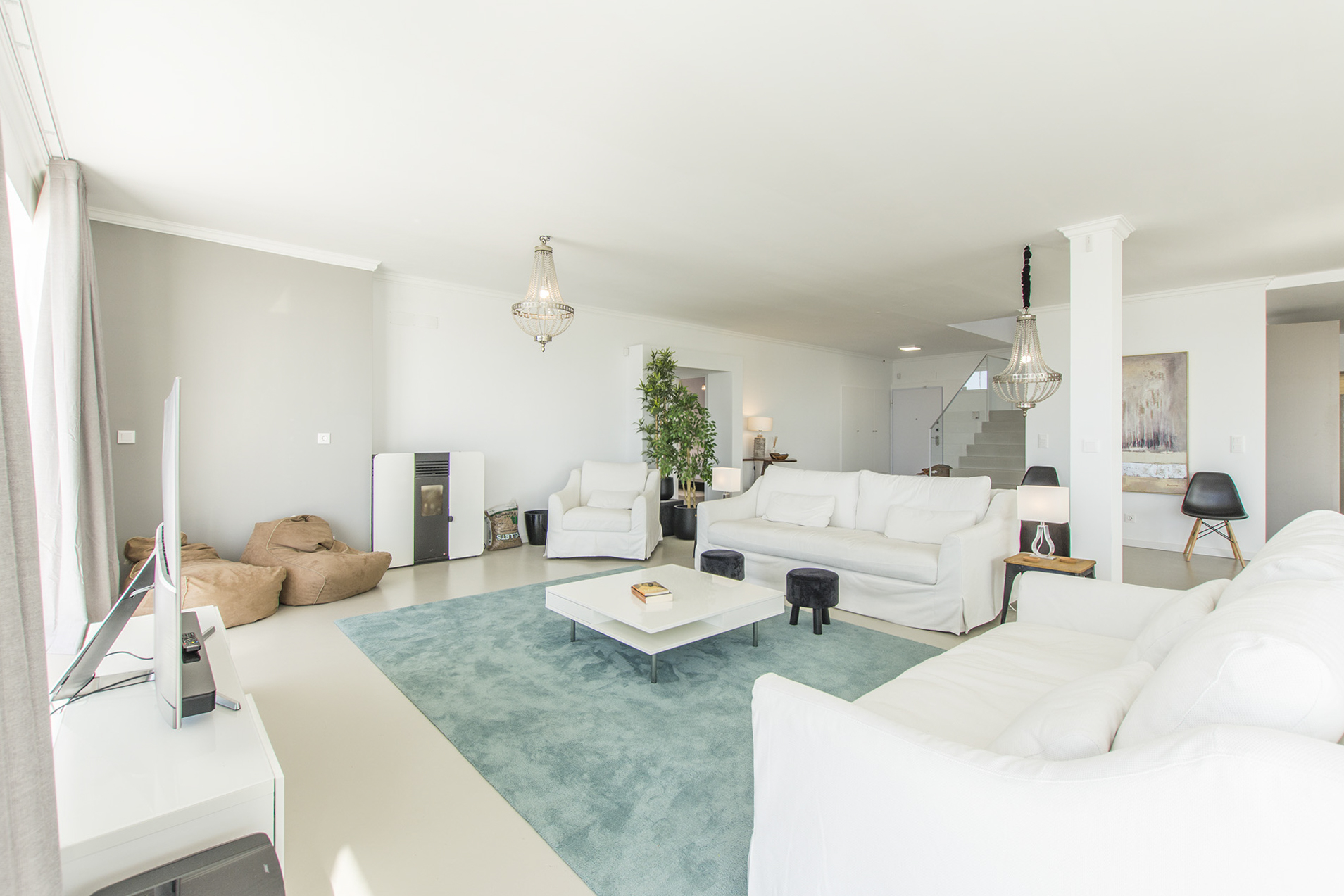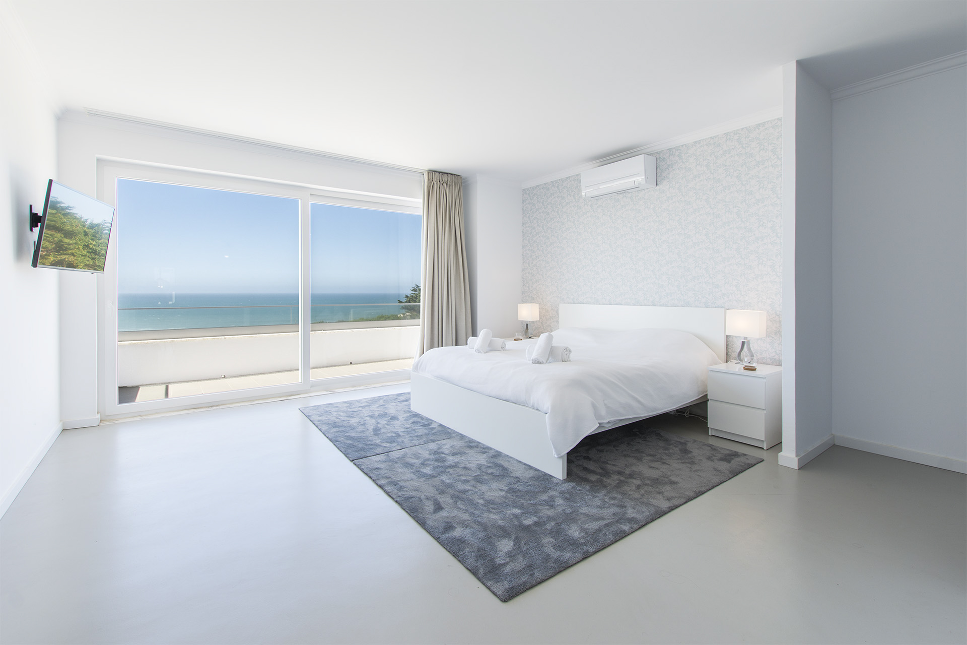Step inside this beautiful villa and appreciate its lovely spacious rooms and delightful contemporary design. With fresh neutral décor throughout, stylish furniture and unique design elements, guests will love to relax and unwind in this special abode. The ground floor welcomes you with a large open-plan kitchen-living area, drenched in natural light through banks of glass doors, allowing you to appreciate those all-important see views from any aspect. There are great spaces to entertain in, from a large sumptuous seating area to a large wooden dining table, and the ultra-modern kitchen means that cooking up a Portuguese feast will be a breeze.