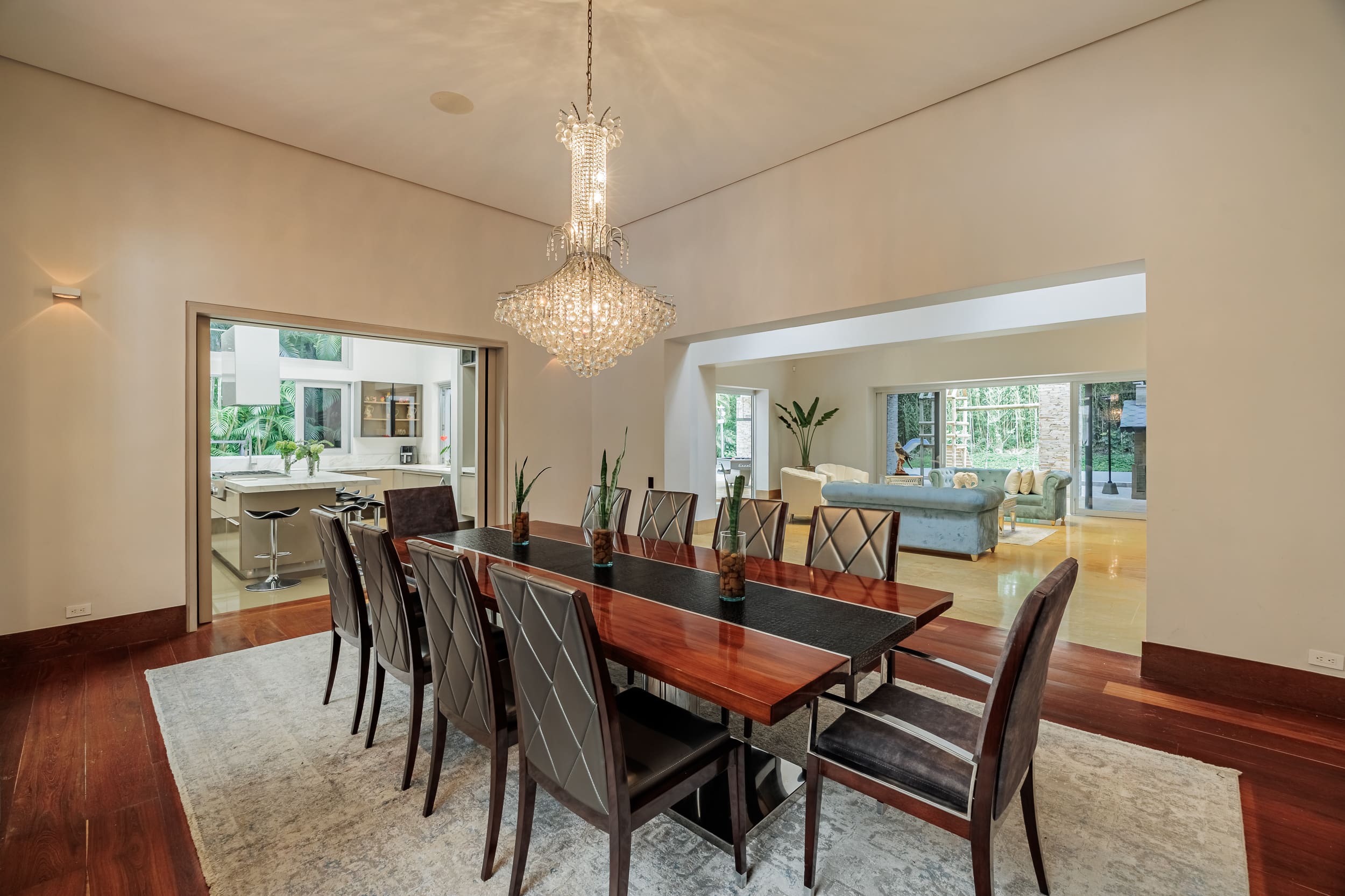 Step inside this exquisite villa and be greeted by a sophisticated interior that seamlessly blends modern design with traditional Colombian charm. The spacious living areas are perfect for relaxation, featuring plush seating and a large TV screen ideal for family movie nights. The fully equipped kitchen invites culinary exploration, while the dining area comfortably accommodates up to ten guests, making it perfect for intimate gatherings. The villa boasts five elegantly appointed bedrooms, each with its own en-suite bathroom, ensuring privacy and comfort for all guests. For additional sleeping arrangements, sofa beds are available in three bedrooms, accommodating up to six additional guests.