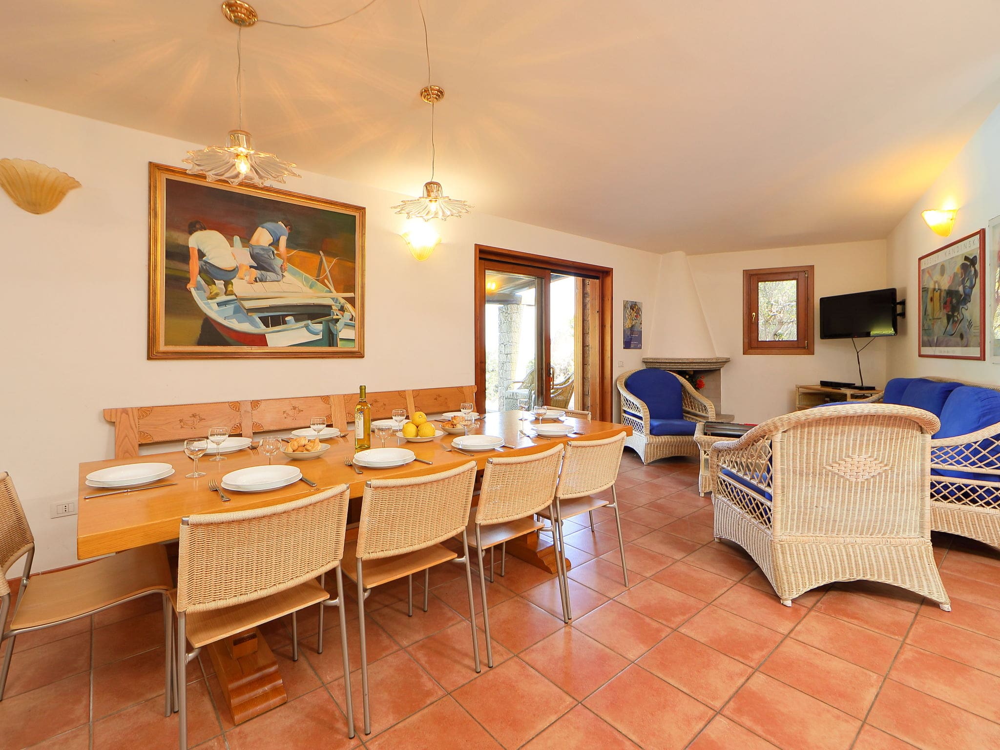 The interior spaces have been thoughtfully designed to accommodate up to 12 guests across six well-appointed bedrooms. The heart of the villa features a generous living and dining area with panoramic windows that frame distant sea views, while an open-hearth fireplace creates a warm focal point for evening gatherings. The satellite television and modern amenities ensure comfort without compromising the authentic character of this Sardinian retreat.