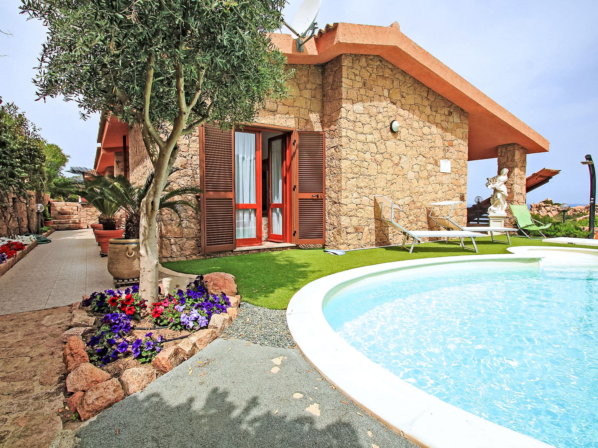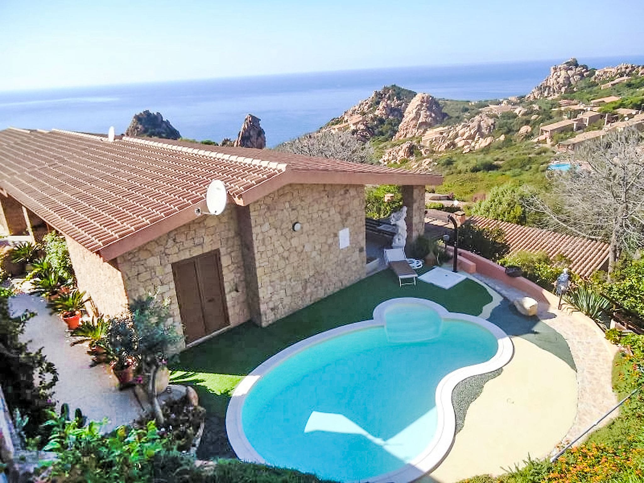 The seasonal pool operation from May through October aligns perfectly with Sardinia’s warm weather months, while air conditioning ensures comfort during the height of summer. The property’s sunny position maximizes natural light throughout the day while the elevated location captures cooling sea breezes.