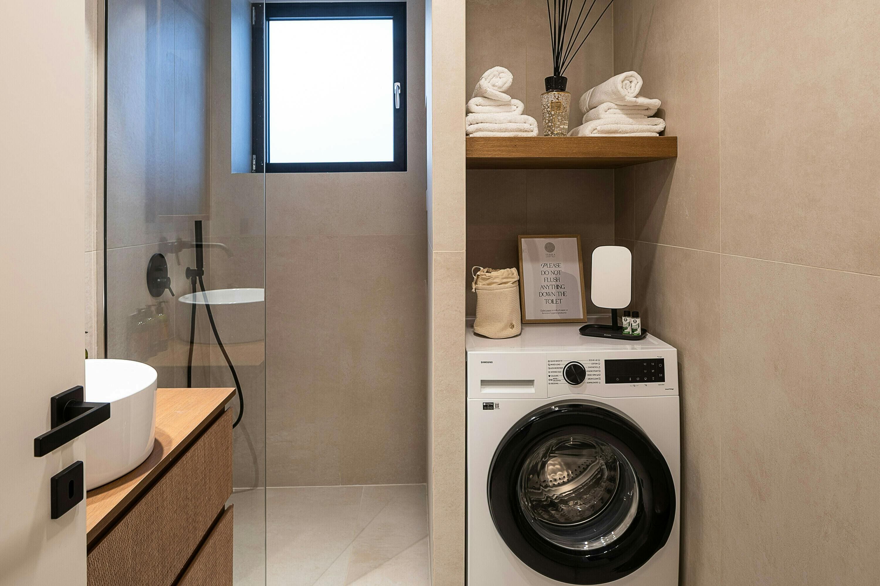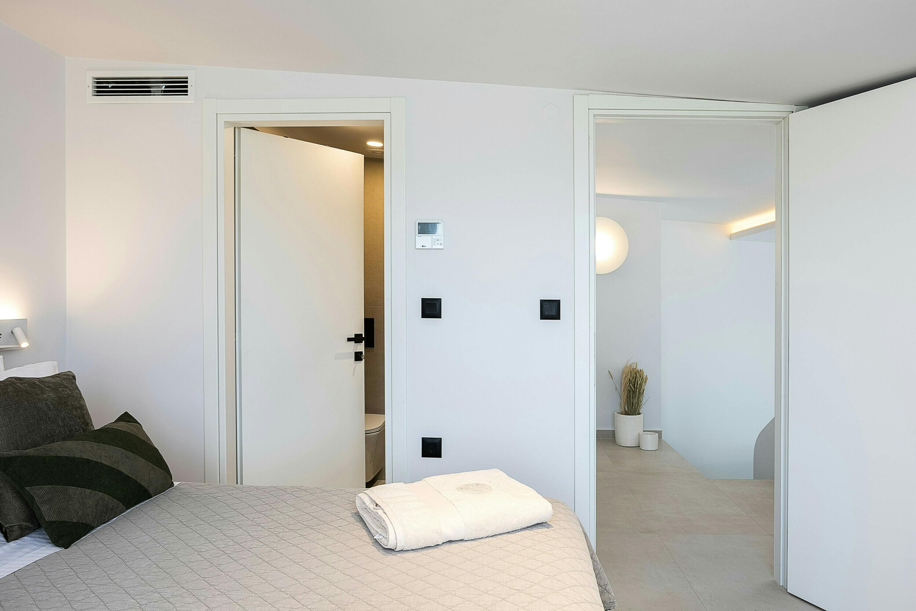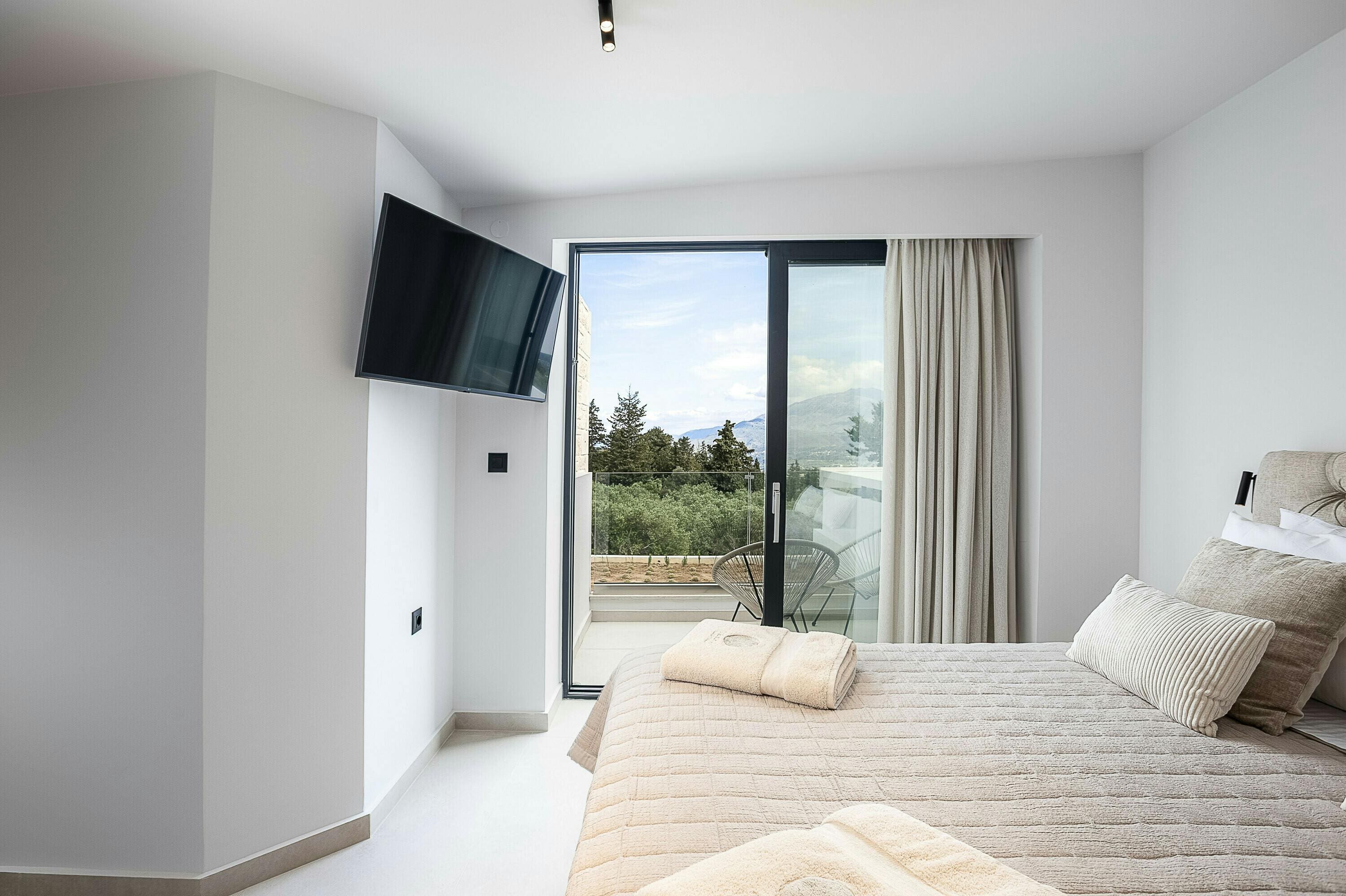 Step inside to discover a harmonious blend of contemporary design and traditional Greek charm. The villa boasts four spacious bedrooms, each with its own en-suite bathroom, providing privacy and comfort for all guests. The open-plan living area features stylish furnishings, a fully-equipped kitchen, and large windows that flood the space with natural light, creating a warm and inviting atmosphere.