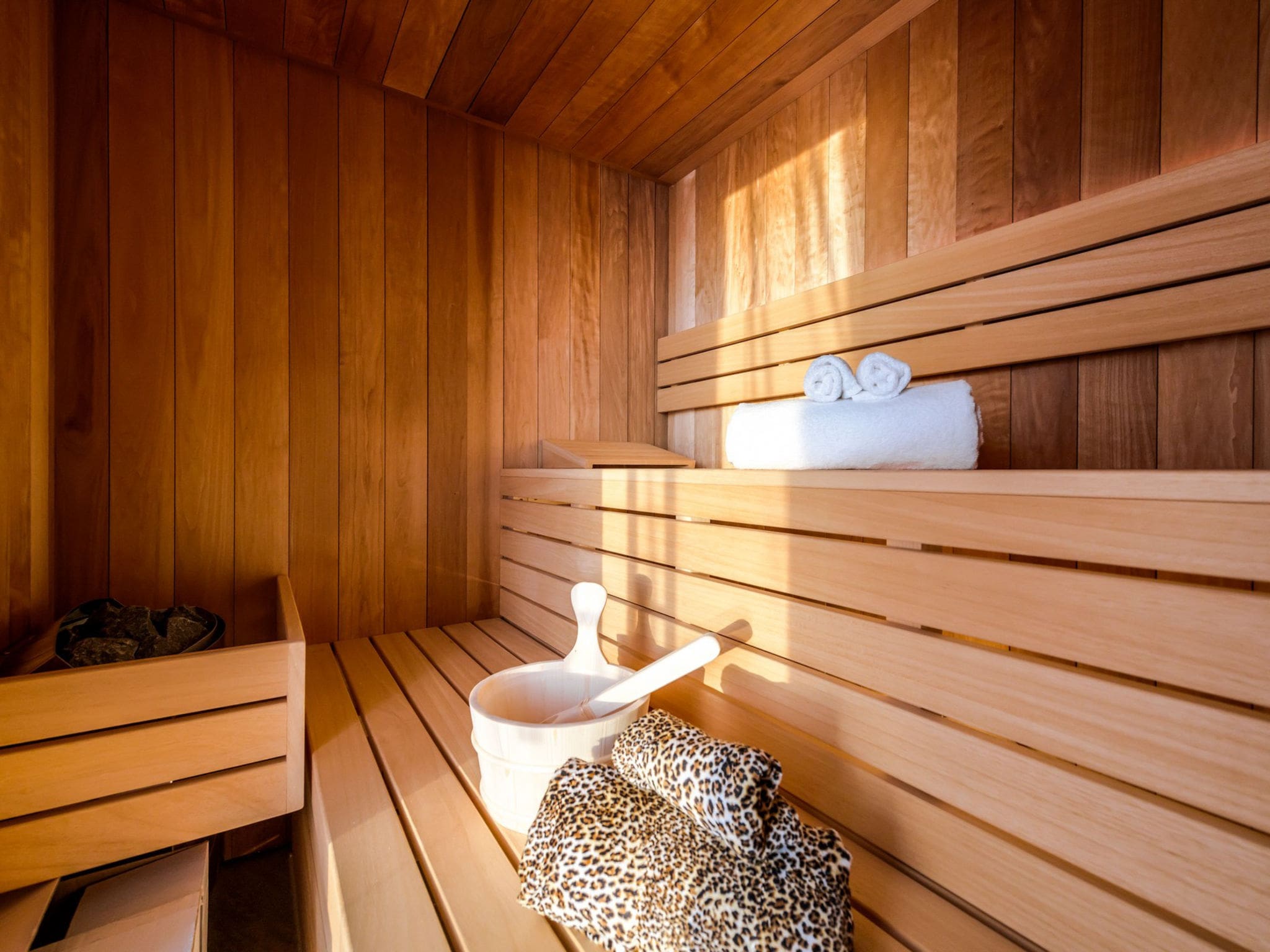 Additional outdoor amenities include a portable barbecue for evening dining, comprehensive terrace furniture, and beautifully landscaped gardens. The property includes a sauna, hot tub, and billiard table for entertainment, while covered parking provides security for your vehicle. For active guests, bicycles are provided along with access to a treadmill and elliptical trainer.