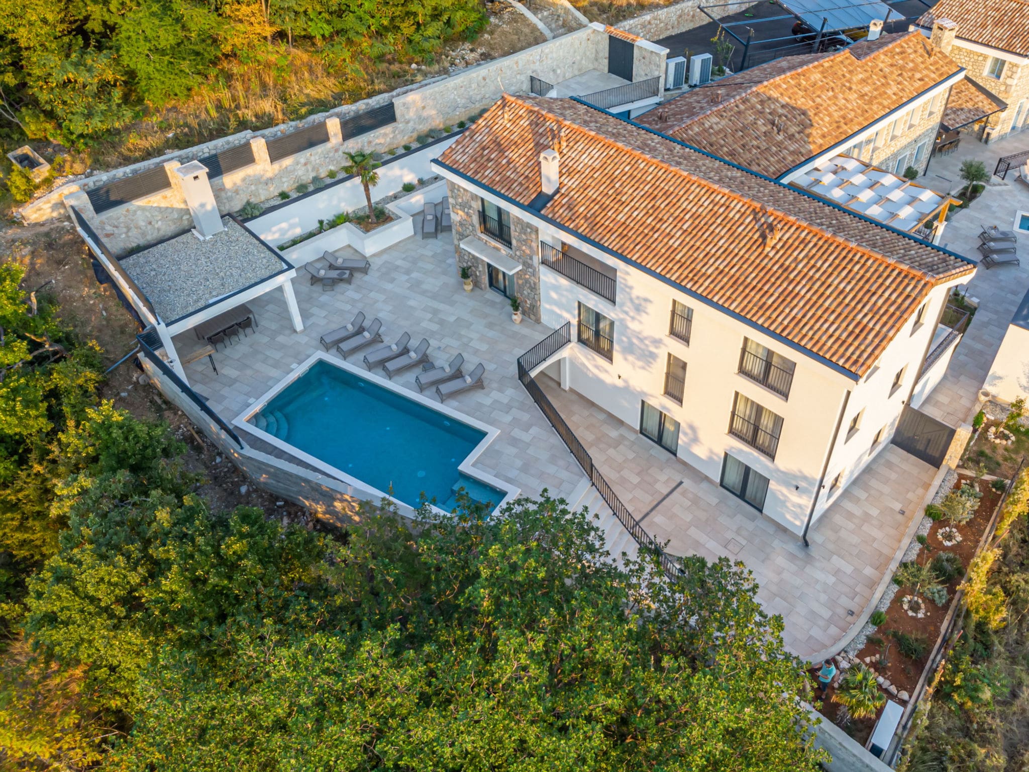 The property’s wellness facilities, including a private sauna and massage services, create an adult retreat atmosphere while maintaining family functionality. Multiple terraces and outdoor spaces allow different family members to enjoy their preferred activities simultaneously, from quiet reading to active games.